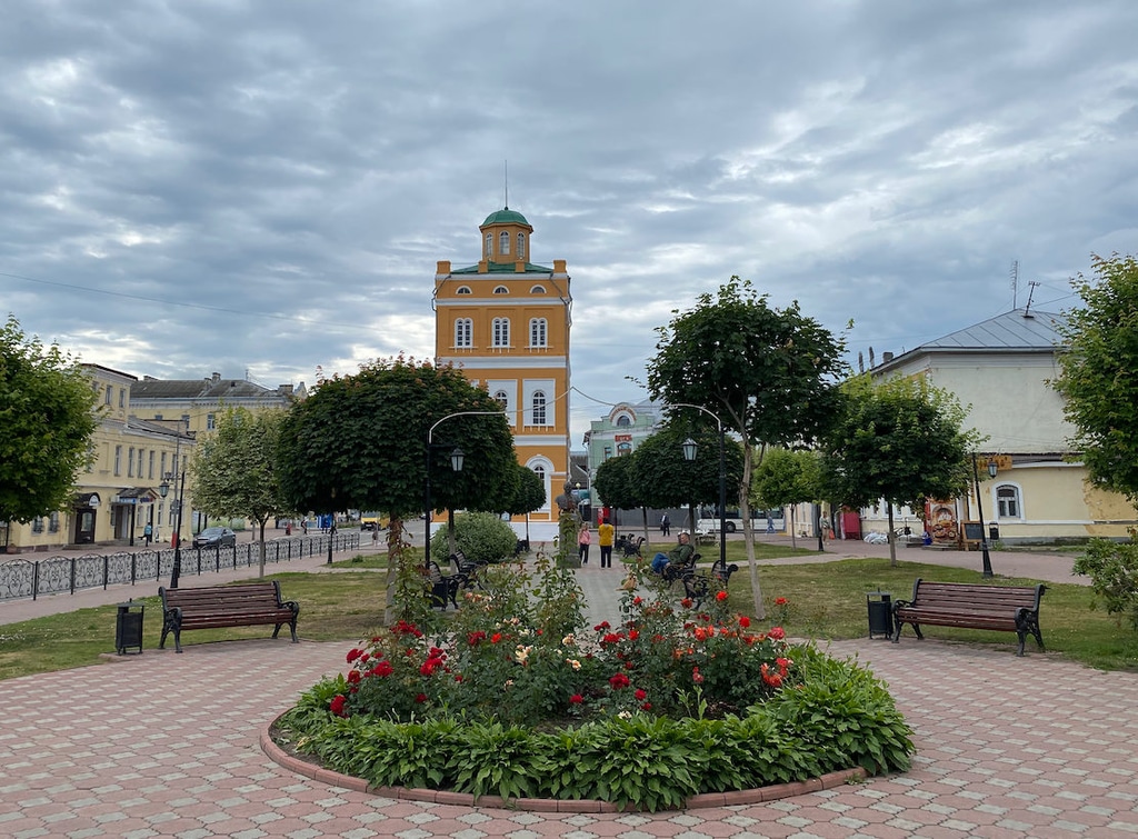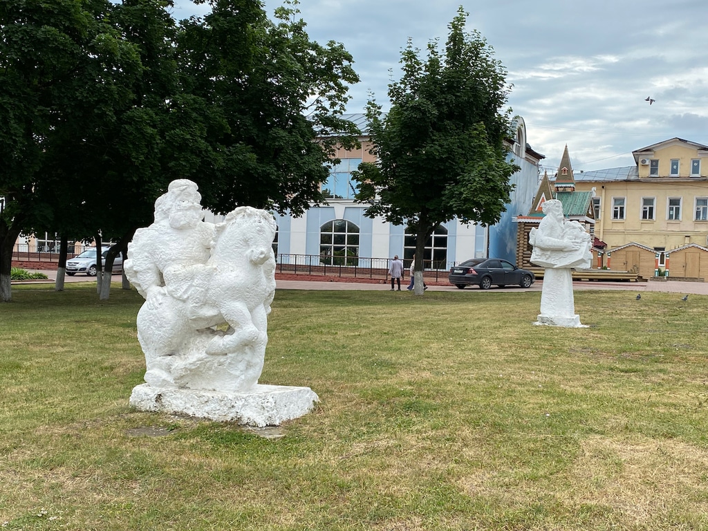 Центр площади Крестьянина украшает памятник Петру и Февронии, а рядом — сразу два монастыря: Троицкий и Благовещенский.