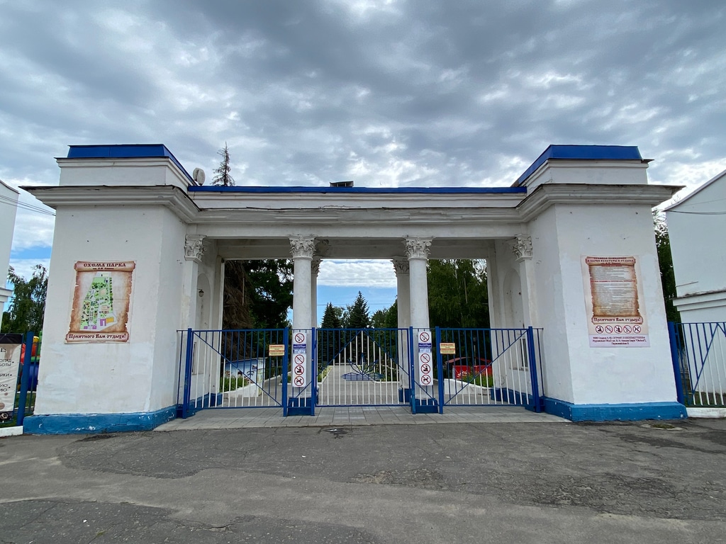 За памятником Илье Муромцу раскинулся Окский парк, куда мы и проследуем дальше.