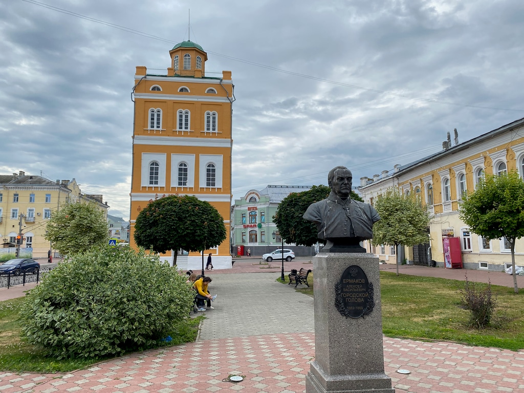 Построили водонапорную башню на деньги городского головы Ермакова. Его памятник возвышается недалеко от детища градоначальника.