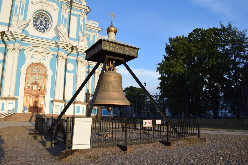Прямо напротив Смольного собора располагается колокол. Это бронзовое чудо изготовили в 2013 году. Оно весит примерно десять тонн. Городские власти намерены в недалеком будущем построить колокольню и повесить колокол туда.