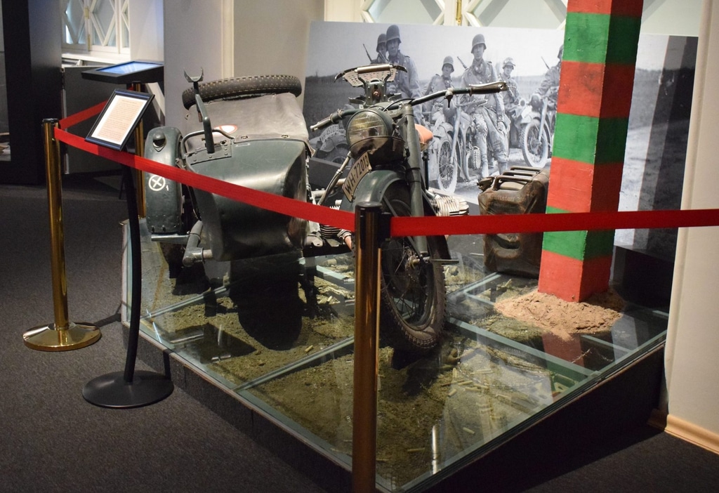 На следующей фотографии — немецкий мотоцикл. Его добыл в бою рядовой солдат. После войны он использовал его вместо трактора в своей деревне. Позже мотоцикл попал в музей обороны и блокады Ленинграда.