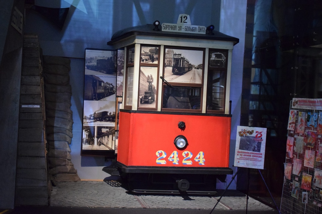 В музее представлен вот такой блокадный трамвай, который во время блокады являлся почти единственным средством передвижения. Трамвай для блокадников был неким символом надежды на скорую победу. Кстати, эти трамваи здорово удивляли оккупировавших город немцев. Им то казалось, что город должен был весь вымереть от голода, а он продолжал жить.
