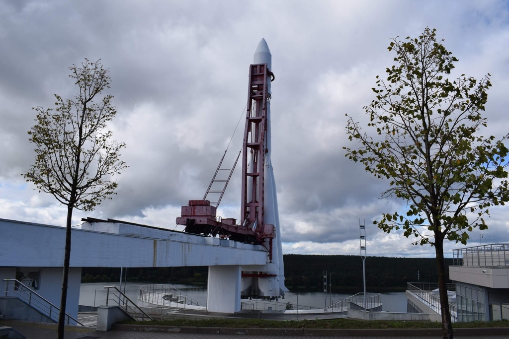 За «Салютом» просматривается легендарный корабль «Восток». Этот корабль является дублером того самого корабля, на котором в 1961 году отправился в космос Юрий Гагарин. Он стоял на Байконуре рядом с основным кораблем. В случае проблемной ситуации дублер должен был его заменить. В музее «Восток» оказался в 1973 году после того, как объездил многие страны Европы.