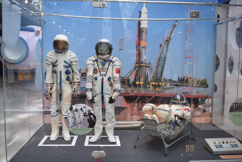 На одной из витрин — скафандры космонавтов образца 1980-х годов.