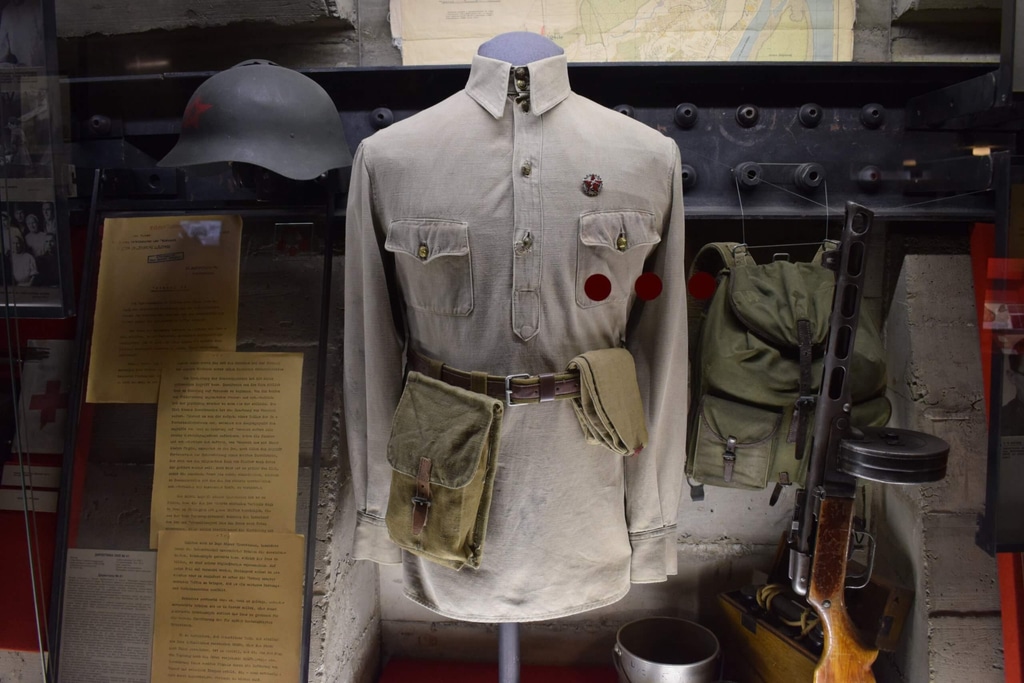 А теперь посмотрим на некоторые экспонаты музея. Начнем с экипировки красноармейцев и немецких солдат.