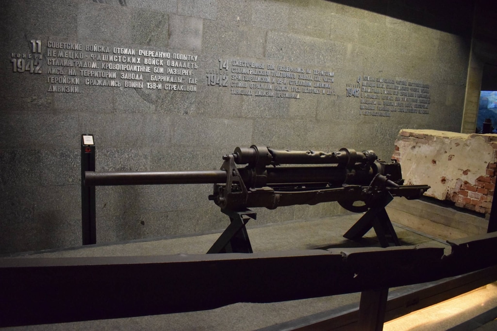 Следующее орудие поступило в музей прямо с места боя. Его нашли в развалинах дома директора завода «Баррикады».