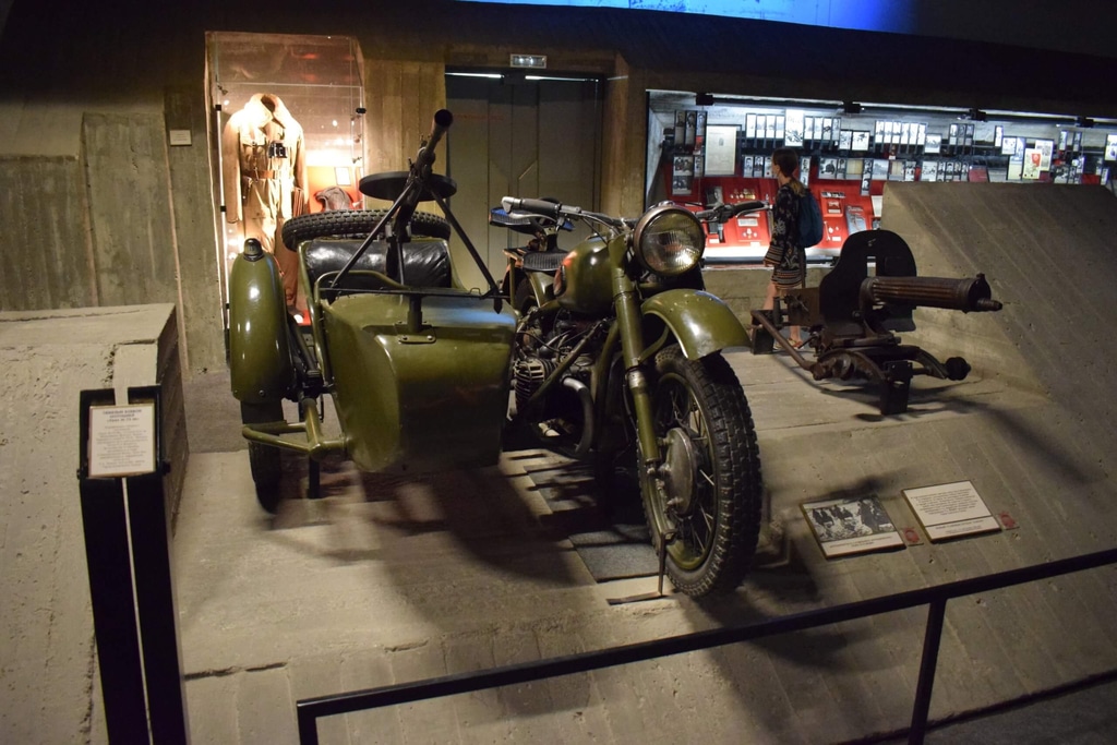 А следующий экспонат — это трофейный немецкий мотоцикл. Он стоял на вооружении германских войск, а к нам в страну попал как трофей. Мотоцикл долго эксплуатировался новым хозяином. Только в 1997 году семья ветерана войны передала его в музей.