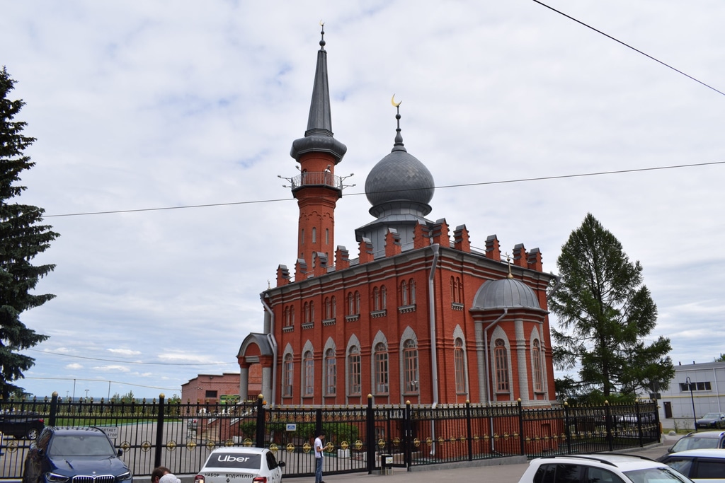 Как уже говорилось ранее, с противоположной стороны посадочной площадки Канатной дороги находится еще один храм. Это главный мусульманский храм города Нижегородская соборная мечеть. Она построена здесь еще до революции в 1915 году и вмещает в себя 5 тысяч верующих. Так же как и многие храмы, в советское время мечеть закрыли, но в конце 1980-х годов вернули верующим. В настоящее время мечеть принадлежит татарской общине.