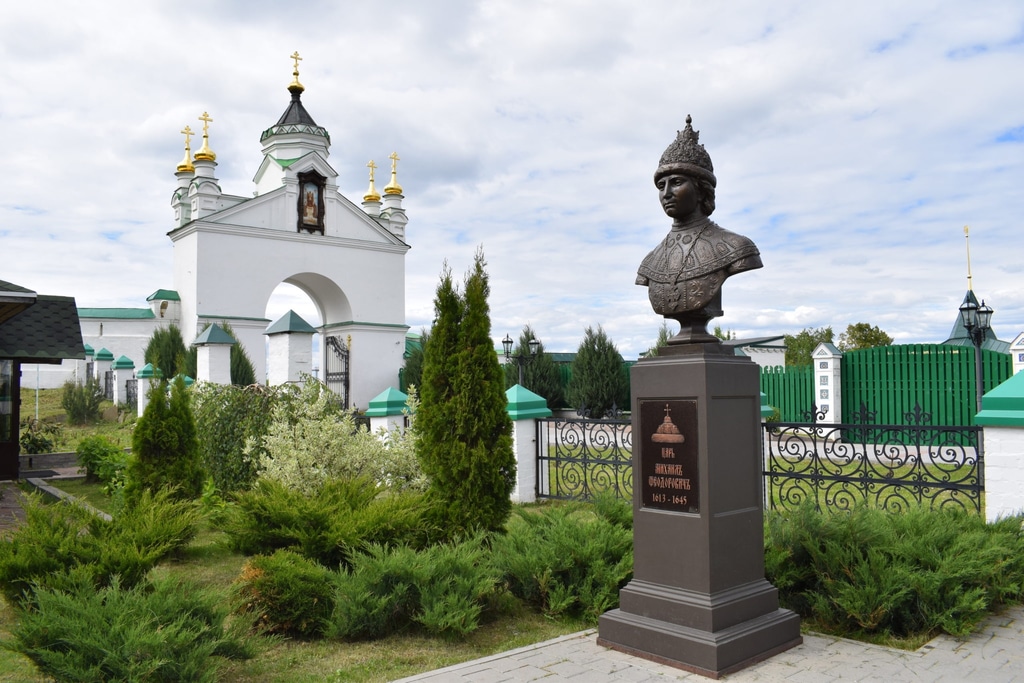 А еще внутри монастыря есть целая аллея, посвященная династии Романовых. Дальше на фотографии один из бюстов Романовых. Это бюст Михаила Федоровича, первого царя династии.