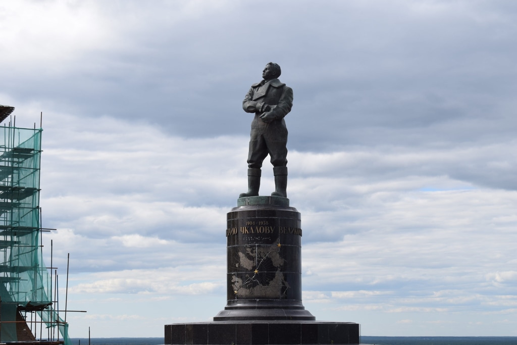 Памятник появился в Нижнем Новгороде перед самой войной в 1940 году. От него к набережной спускается лестница, которая тоже называется Чкаловской. Ее начали строить еще во время войны в 1943 году в честь победы советских войск под Сталинградом.