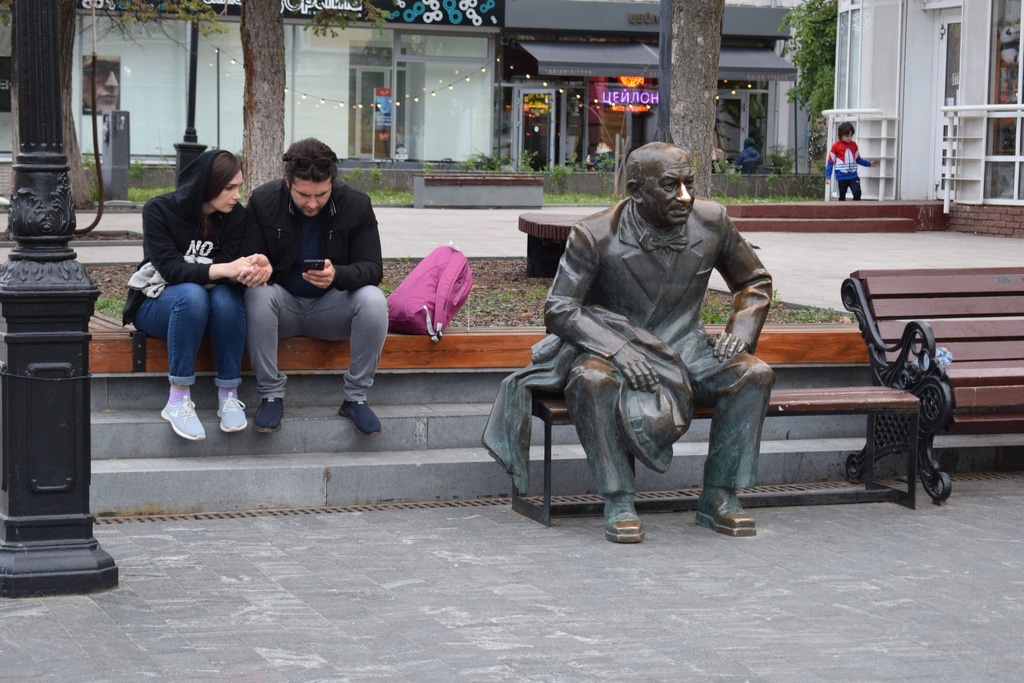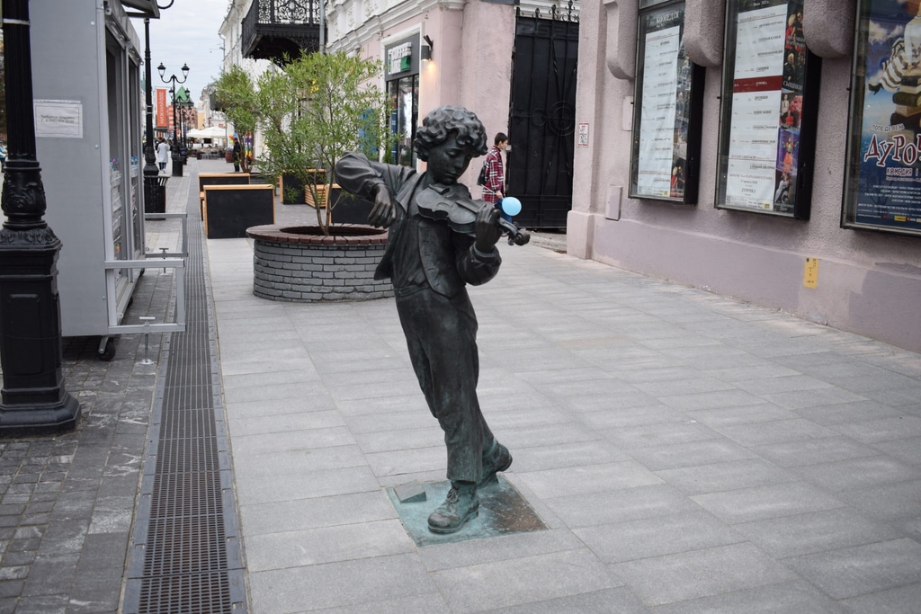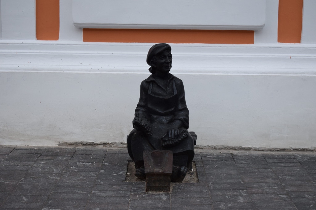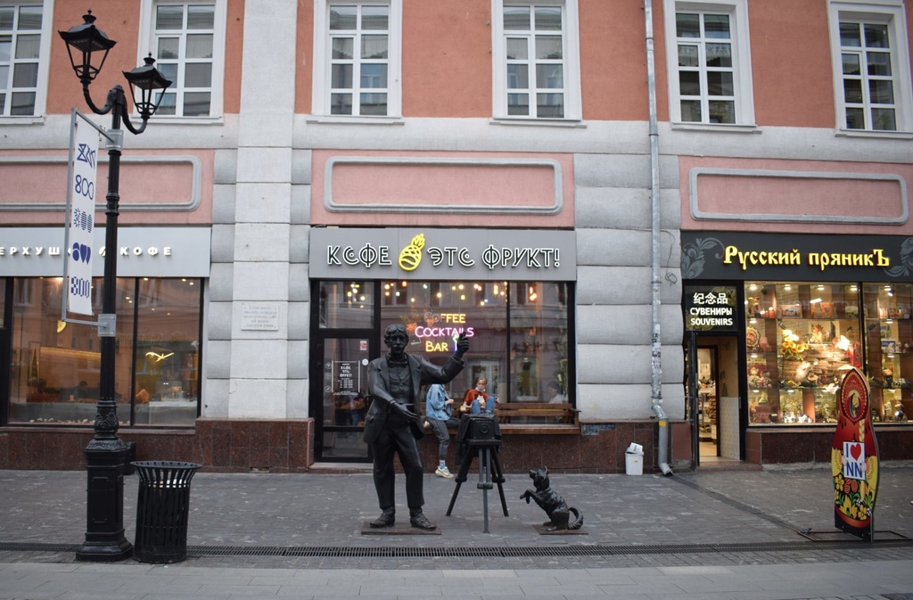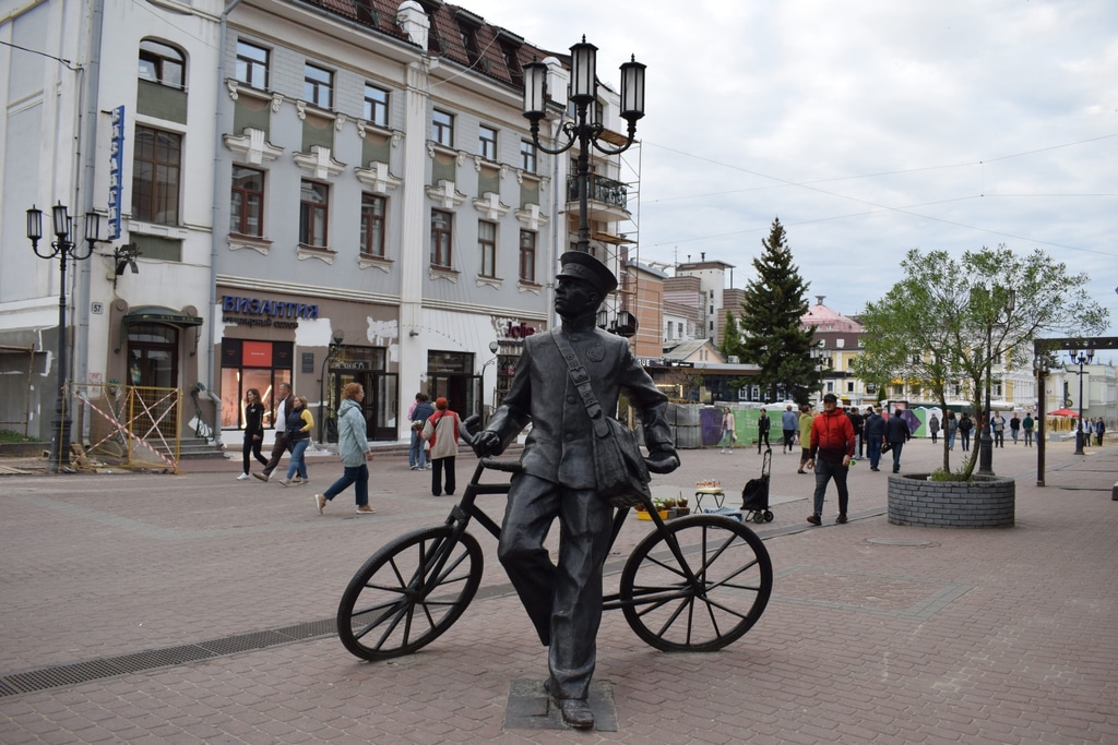 Кроме красивых старинных зданий Большую Покровскую улицу на всем протяжении украшают скульптуры, изображающие жителей города 19 века. Это и почтальон на велосипеде, и фотограф со старой камерой, и скрипач, и чистильщик обуви и другие. Также, если быть повнимательнее, на фасадах зданий можно увидеть симпатичные фигурки птиц и животных.