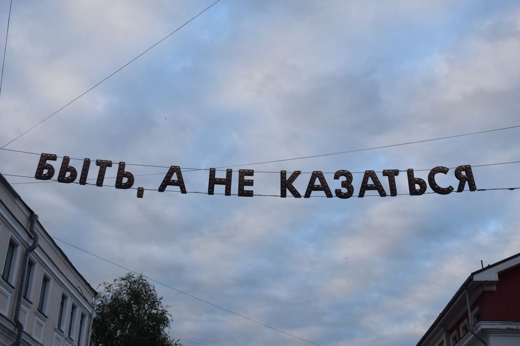 А еще на той же улице мы обнаружили вот такое мудрое изречение: «Быть, а не казаться».