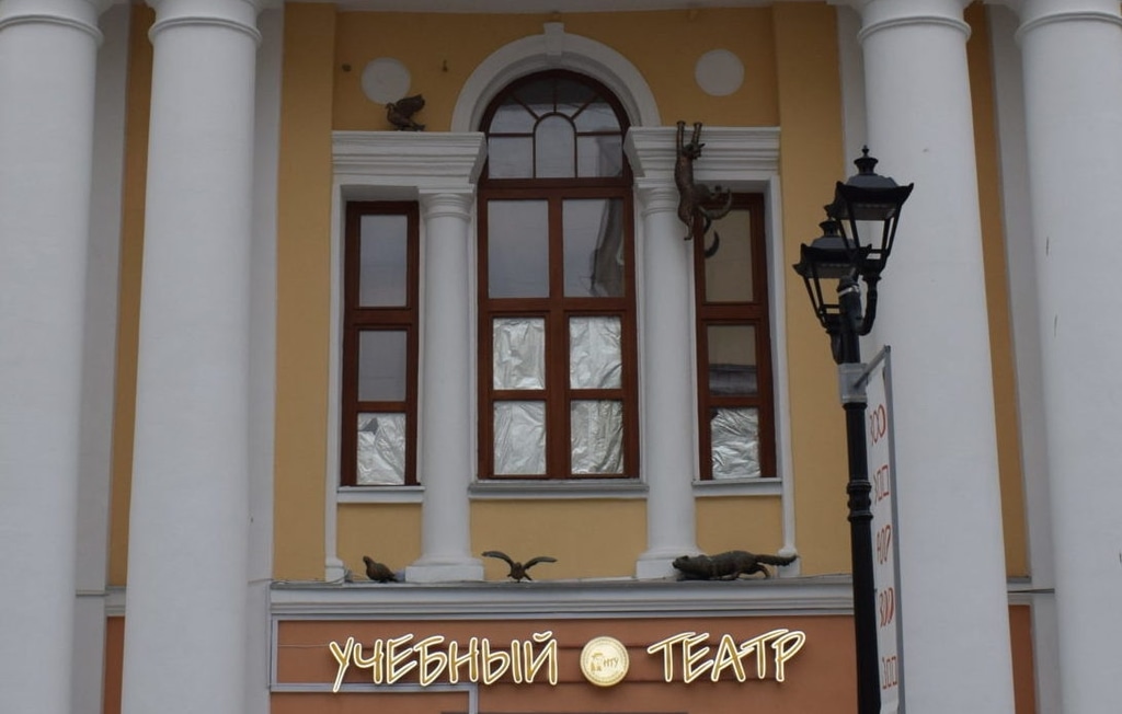 А это фасад здания учебного театра на Большой Покровской улице. Учебный театр функционирует при театральном училище, в котором когда-то учился артист Евстигнеев.