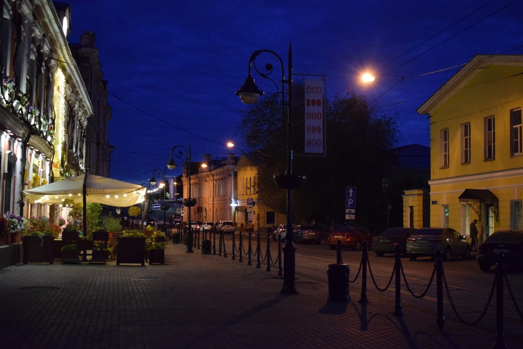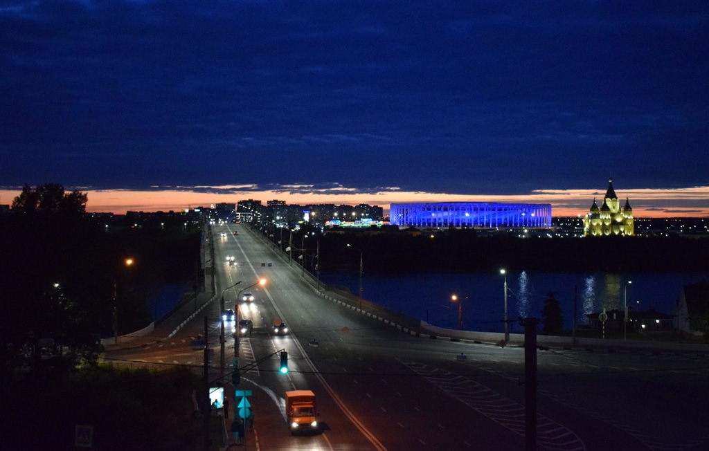 От вокзала открывается чудесный вид на противоположный берег реки с Александро-Невским собором и стадионом. И снова огни, огни, огни…