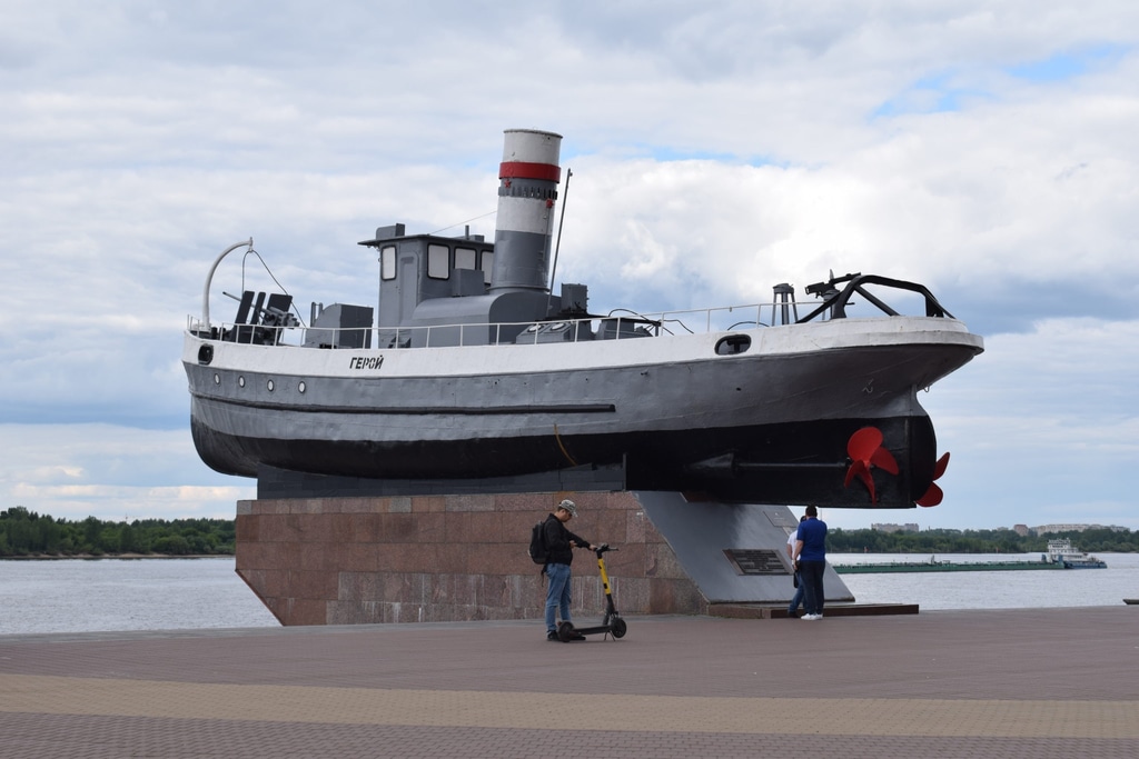 Катер «Герой» — это еще один свидетель военного времени. Он создавался еще до революции в 1916 году. В гражданскую войну катер воевал в составе Волжской флотилии, а в 1942-1943 гг. судно оказалось на Сталинградском фронте. Вот такая славная история у этого скромного по виду героя.