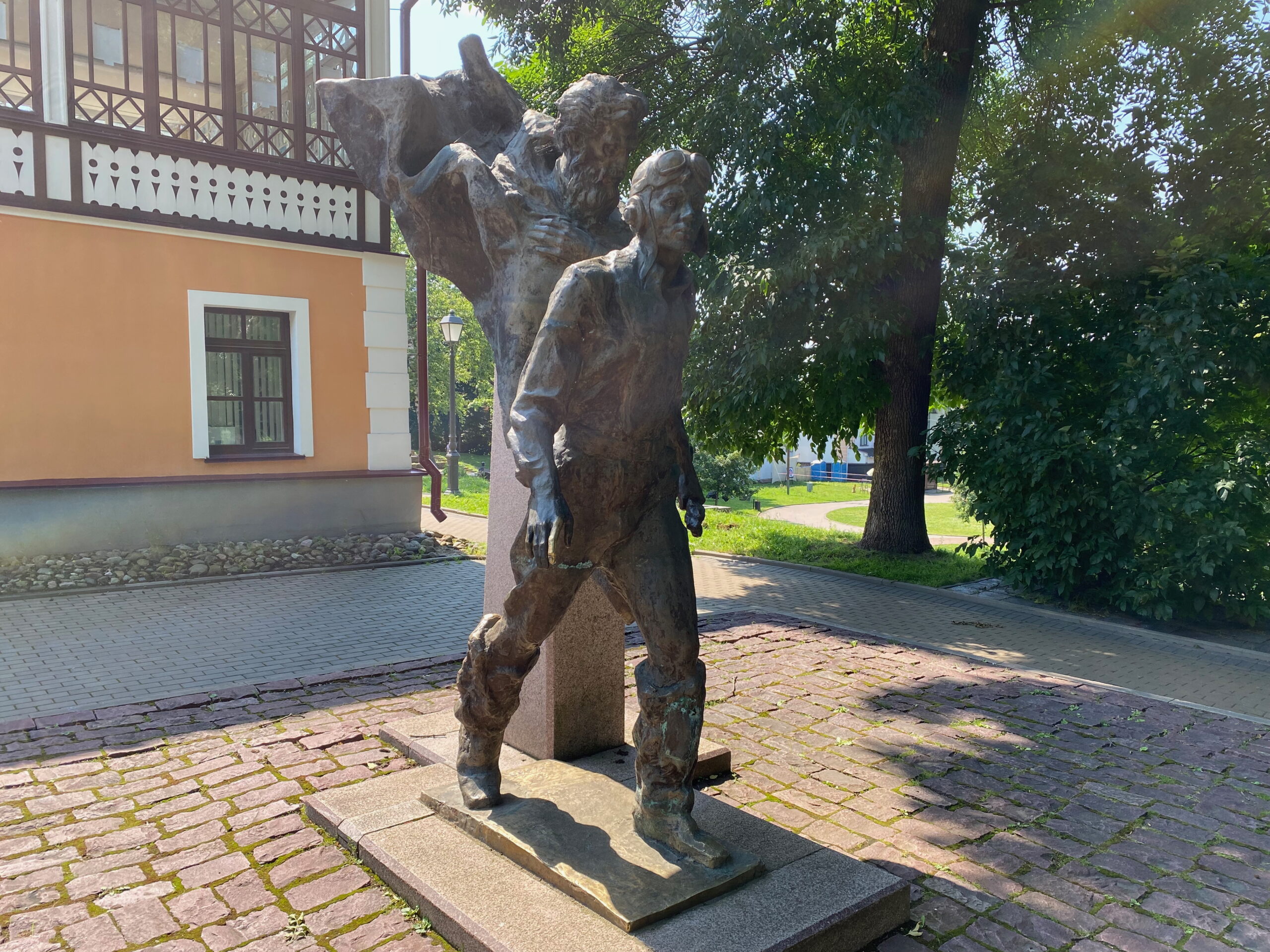 Роман «Два капитана» вышел перед войной в 1940 году. Перед входом в музей — памятник героям книги: капитанам Саше Григорьеву и Ивану Татаринову. В советское время по этой книге сняли фильм «Два капитана». Ну очень увлекательная история! Жаль, что этот фильм сегнодня забыт и пылится где-то на полке.