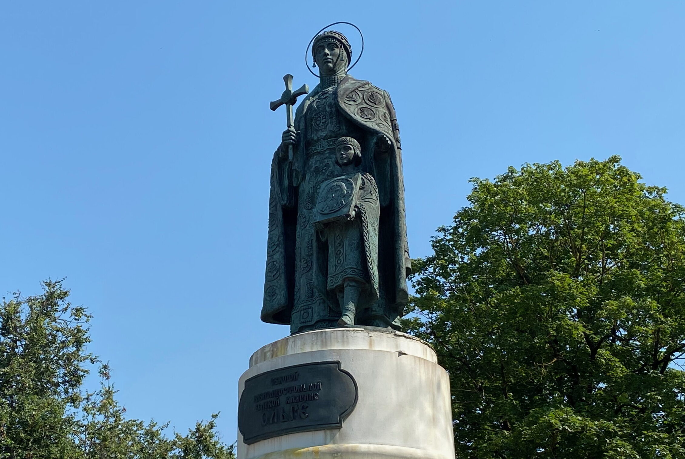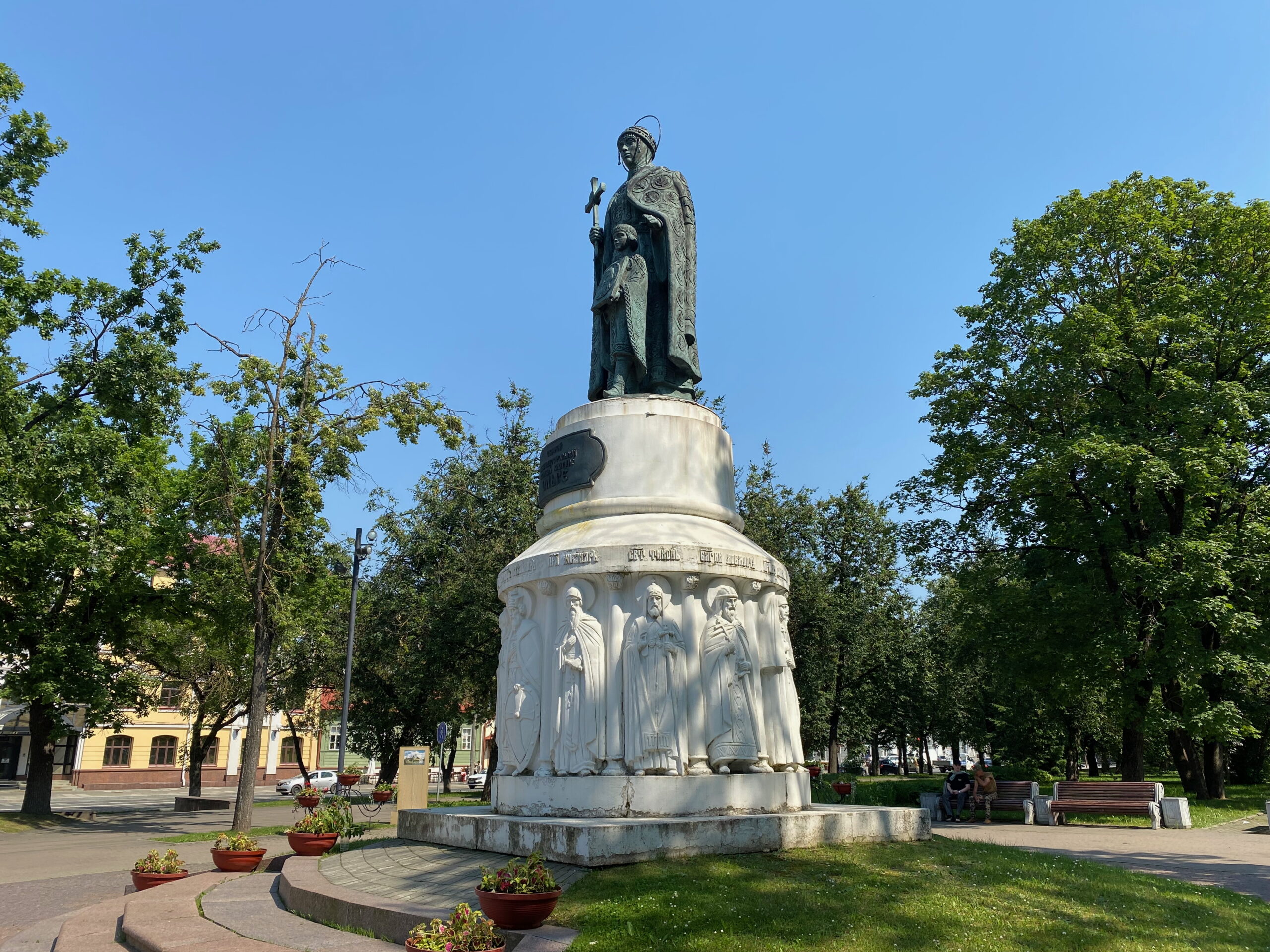 Памятник княгине Ольге занимает почетное место в самом начале Детского парка. Его отлично видно с Октябрьской площади.