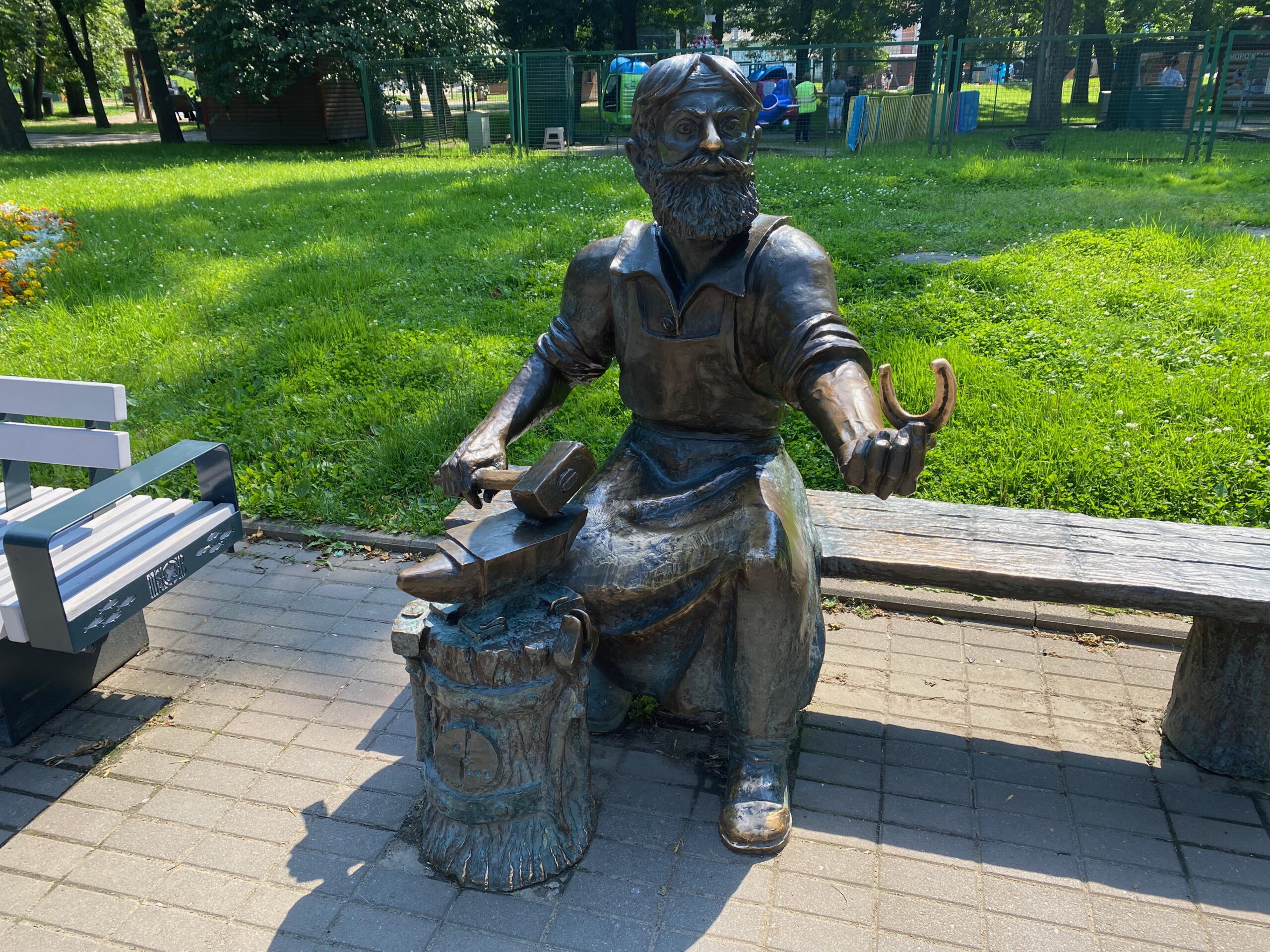 О тех кузнецах напоминает бронзовая фигура кузнеца на скамейке неподалеку от храма.