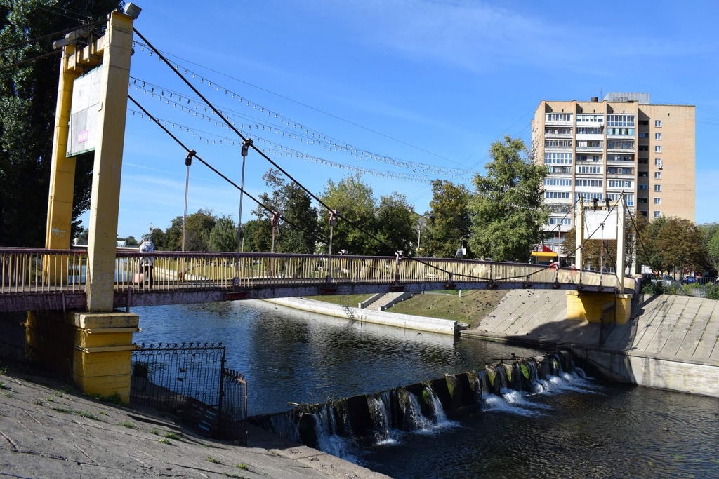 Рядом с обителью через Орлик протянулся симпатичный подвесной мостик. Кстати, с реки дует приятный летний ветерок, что очень приятно.