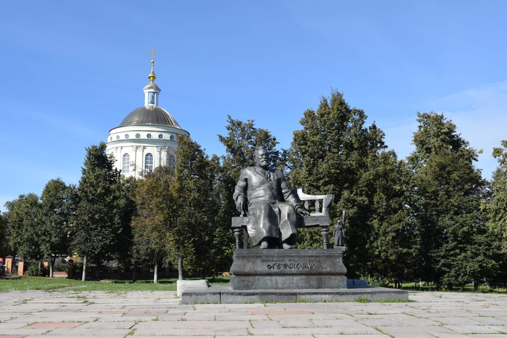 Лесков родился в селе под Орлом и долгое время жил в самом городе. Благодарные земляки в 1981 году установили писателю памятник. Лесков сидит на лавочке в окружении своих любимых героев.