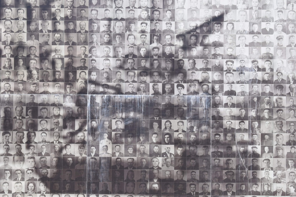 По пути к дому, в котором жил писатель Бунин, нам встретился оригинальный памятник Победы в Великой Отечественной войне 1941-1945 гг. Стена памяти открылась не так давно в 2000-е годы. На пустующей стене установлен уникальный коллаж из 1000 фотографий орловцев-защитников нашей Родины. Идея потрясающая и не избитая!