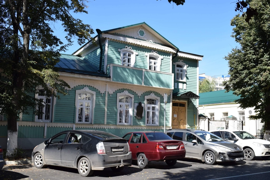 Кстати, дом Лескова находится совсем рядом с «Дворянским гнездом». Вот такой небольшой нарядный домик в зелено-белых тонах.