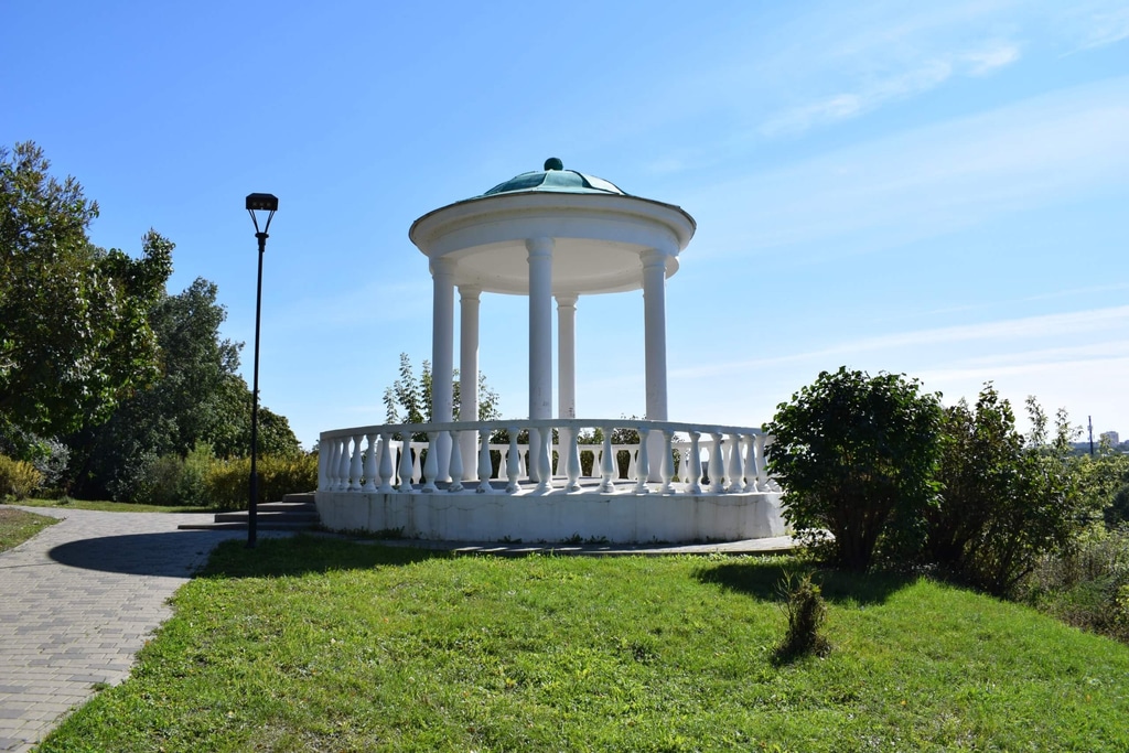 А дальше сама парковая зона с белоснежной беседкой и бюстом Тургенева.