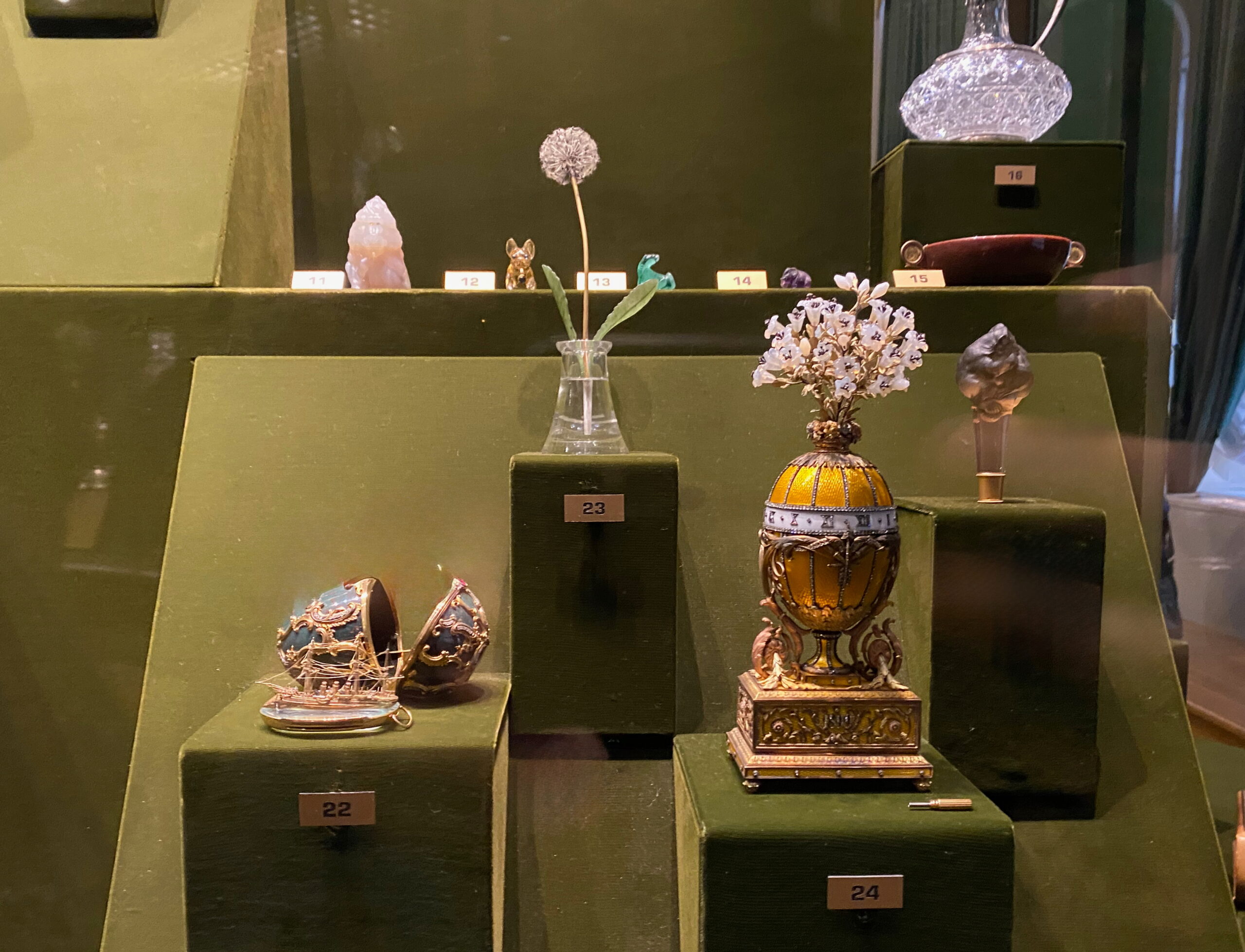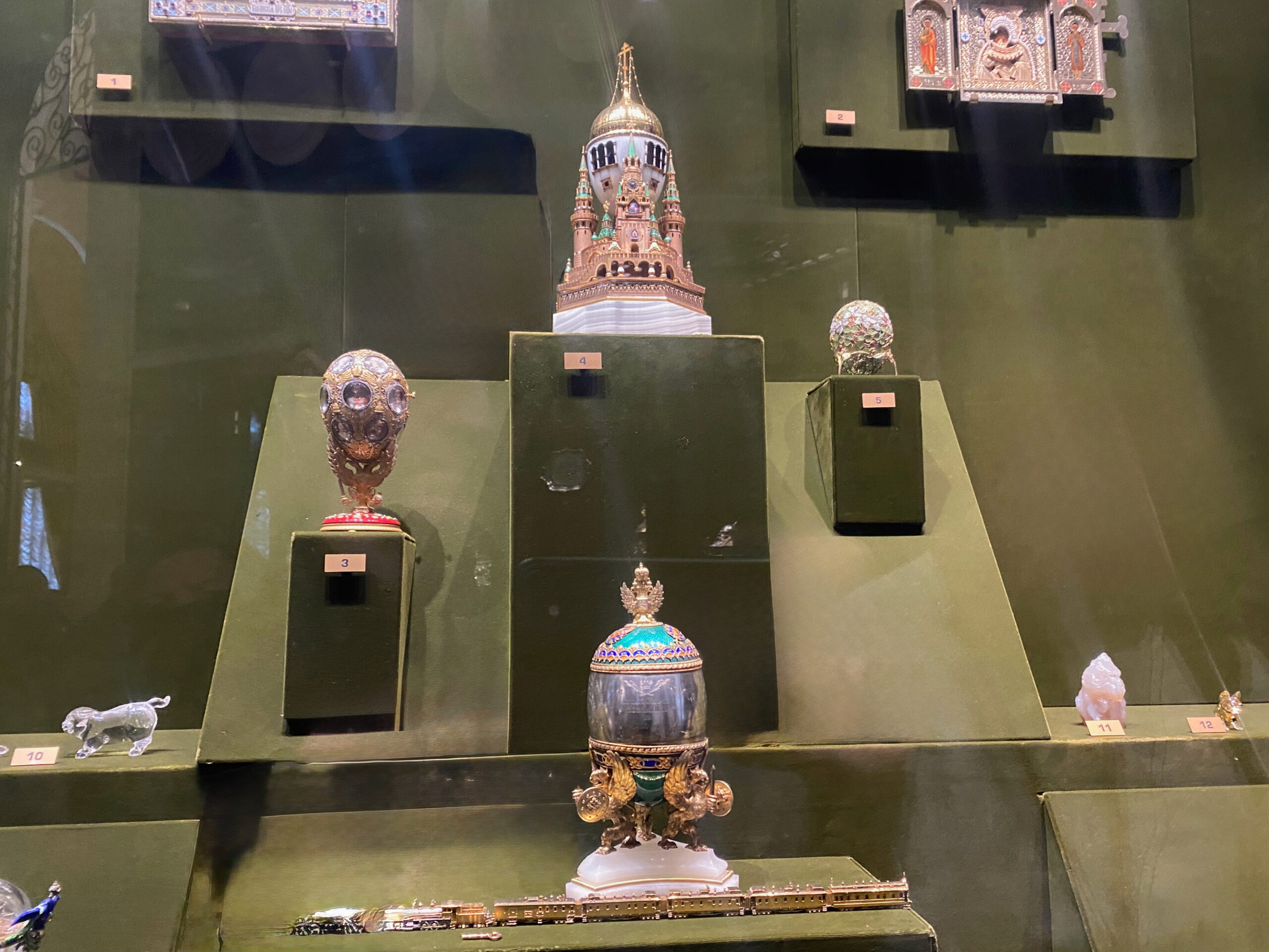 И последнее, о чем хотелось бы рассказать, — это яйца Фаберже. Они попали в Оружейную палату в 1917 году из Петербурга. Временное правительство распорядилось вывезти ценности из-за наступления немцев.