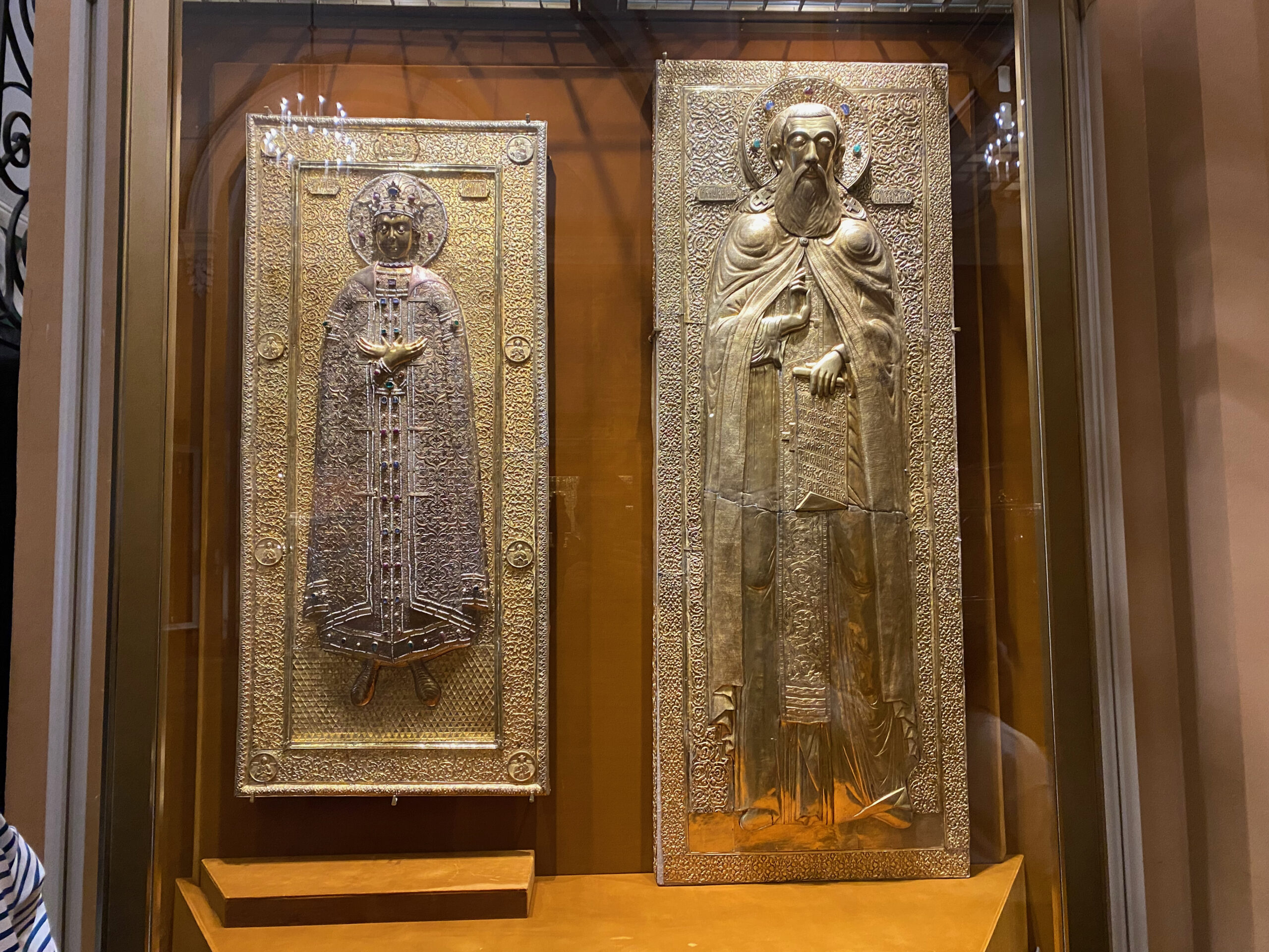 Вторая крышка — от раки преподобного Кирилла Белозерского. Этот святой основал Кирилло-Белозерский монастырь под Вологдой. Там же, в монастыре, он и похоронен.