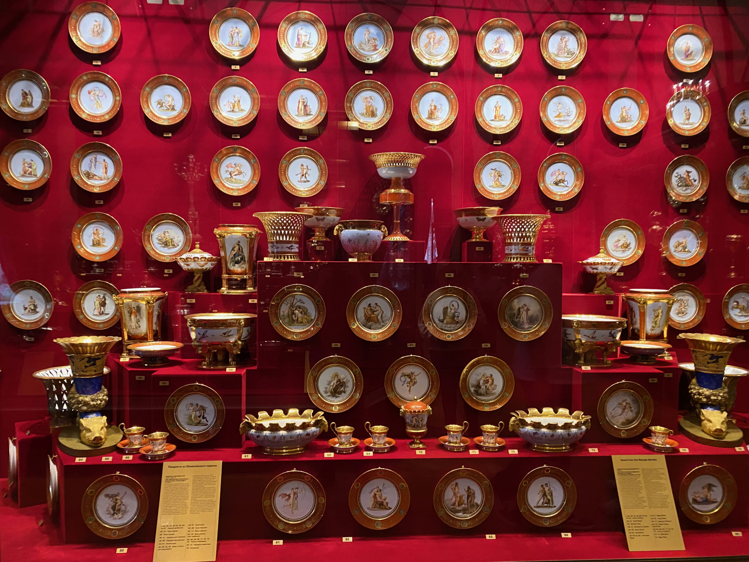Олимпийский сервиз приехал к нам из Франции. Его заказал в 1806 году французский император Наполеон. В 1807 году Наполеон преподнес его Александру I как знак дружбы после Тильзитского мира. Тогда Наполеон был на вершине своей славы.