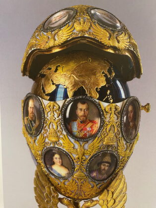 Каждое из яйц Фаберже имеет свою историю. Одно из них изготовлено в 1913 году и посвящено 300-летнему юбилею Дома Романовых. Яйцо украшают портреты российских монархов от Михаила Романова до Николая II.