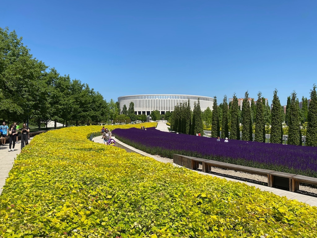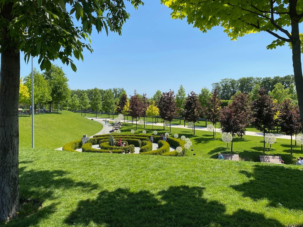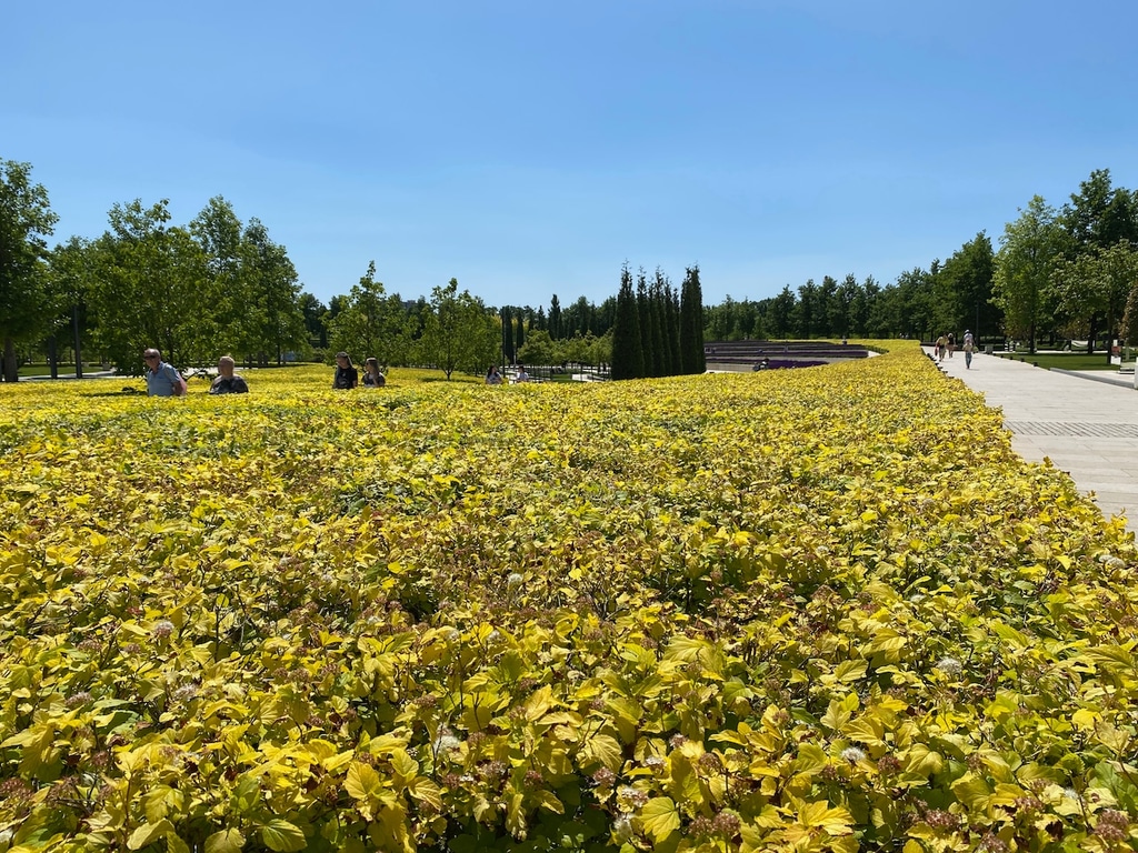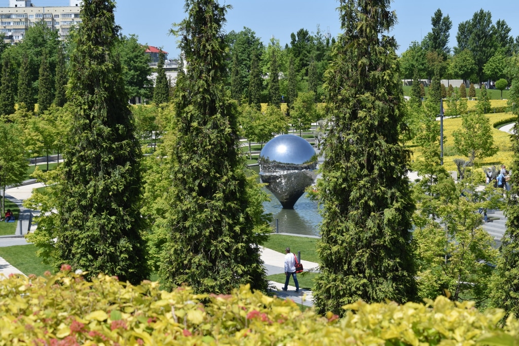 В парке на 23 гектарах разбито около 30 прогулочных зон. Здесь много экзотических растений, фонтанов, есть арт-объекты, водный и музыкальный лабиринты, амфитеатр под открытым небом и многое — многое другое.