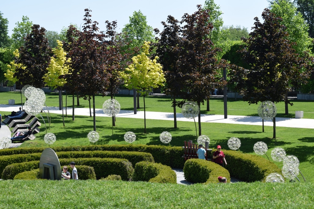 Музыкальный лабиринт не так давно дополнился огромными одуванчиками, которые светятся в темное время суток.
