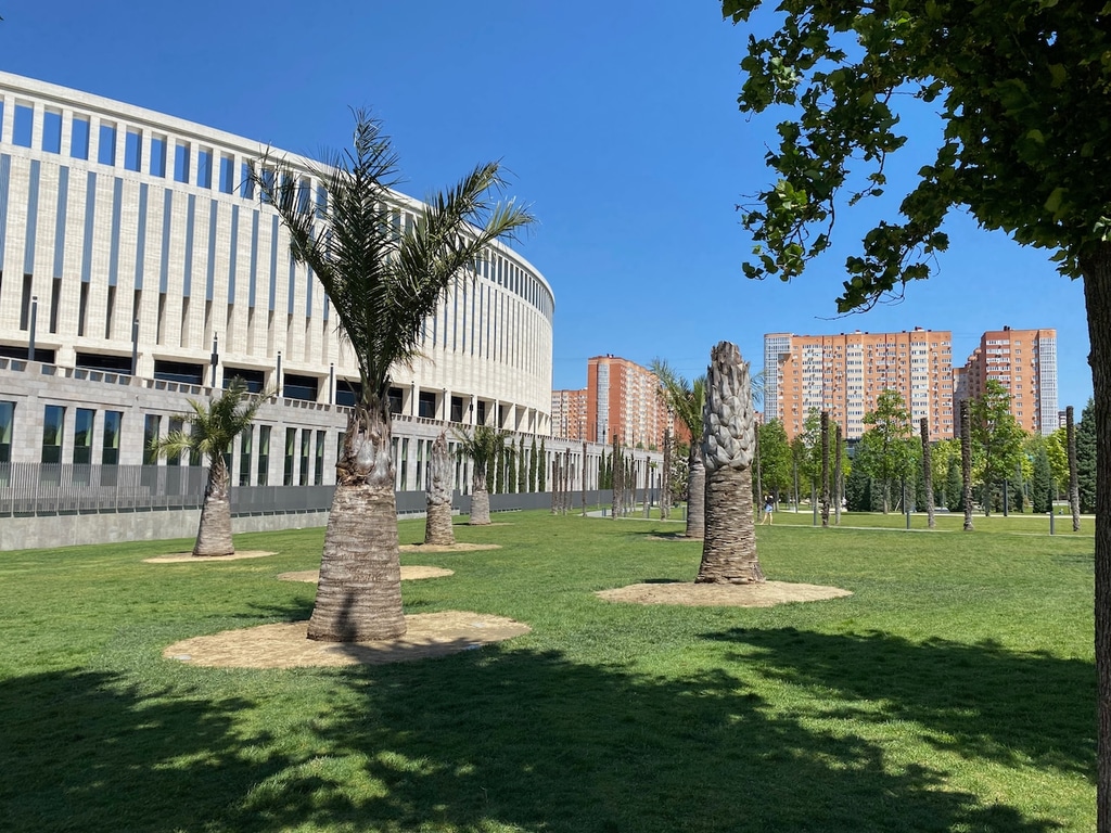 Совершенно невозможно пройти мимо зеркального лабиринта с Королевским делониксом. Дерево входит в пятерку самых красивых деревьев мира. Краснодарский делоникс приехал из Мадагаскара, но, к сожалению, пока не цветет. А цвести он должен красивыми ярко-красными цветами и из-за этого имеет еще одно название «Огненное дерево».