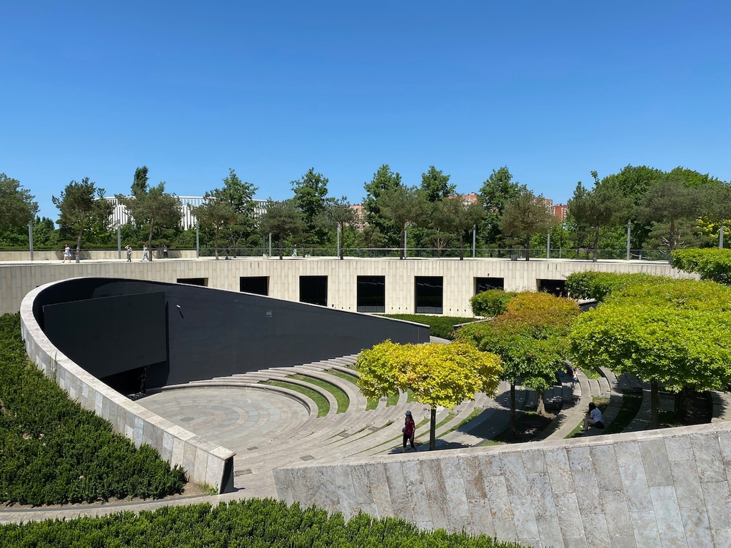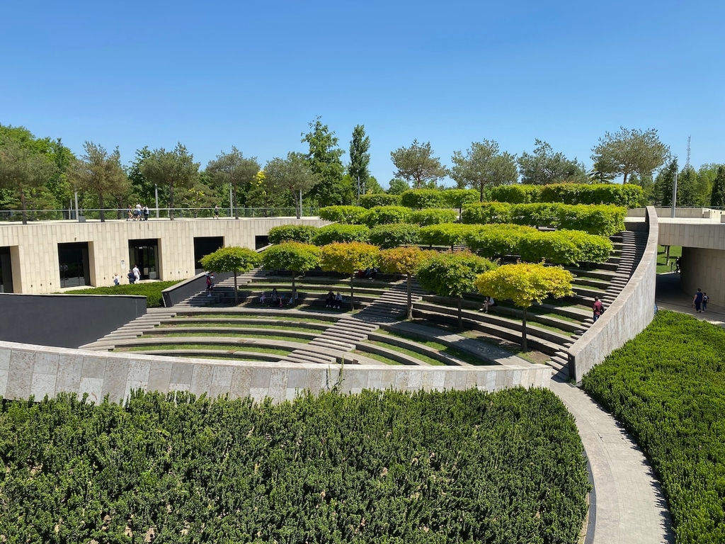 В амфитеатре можно укрыться в тени деревьев от палящего солнца. Недалеко от него расположились туалеты, которые тоже гармонично смотрятся и ничуть не портят окружающее пространство.