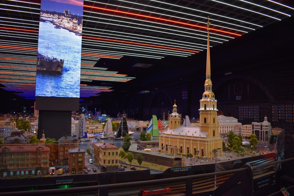 Такой необычный музей как Гранд Макет Россия открылся в Петербурге не так давно, в 2011 году. Сам макет нашего государства просто огромный и составляет 800 кв. м. На макете можно увидеть разные части России с их уникальной природой, архитектурой и миниатюрными сценками из жизни людей. Надо отметить, что макет не статичен. На нем по настоящему кипит жизнь: двигаются фигурки людей, бегут поезда, летают вертолеты и многое другое. Мало того, каждые 13 минут в зале идет смена дня и ночи. Это создает дополнительный эффект. Ночные города смотрятся в темноте удивительно красиво.