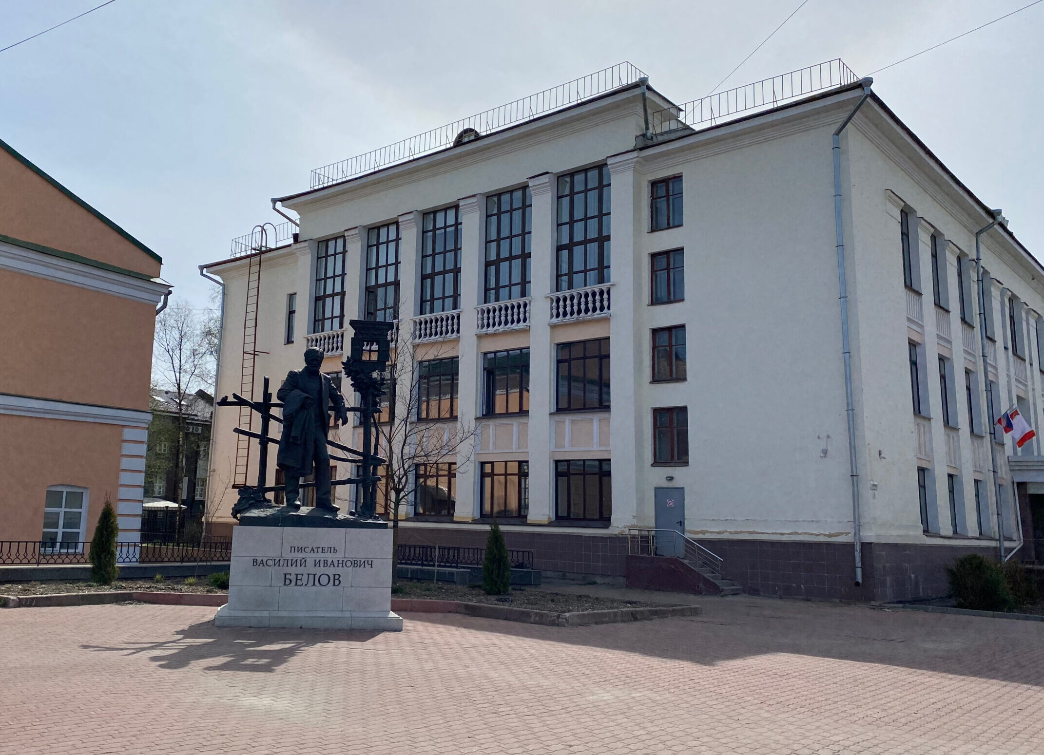 Рядом с музыкальной школой возвышается памятник писателю Белову.