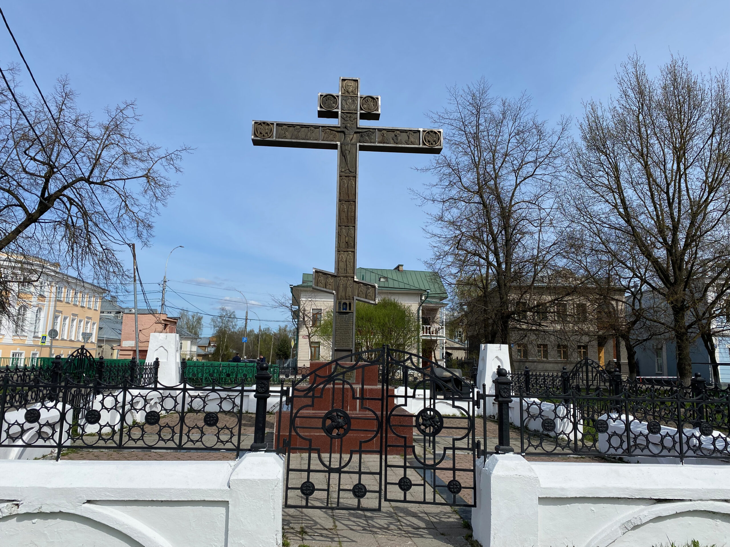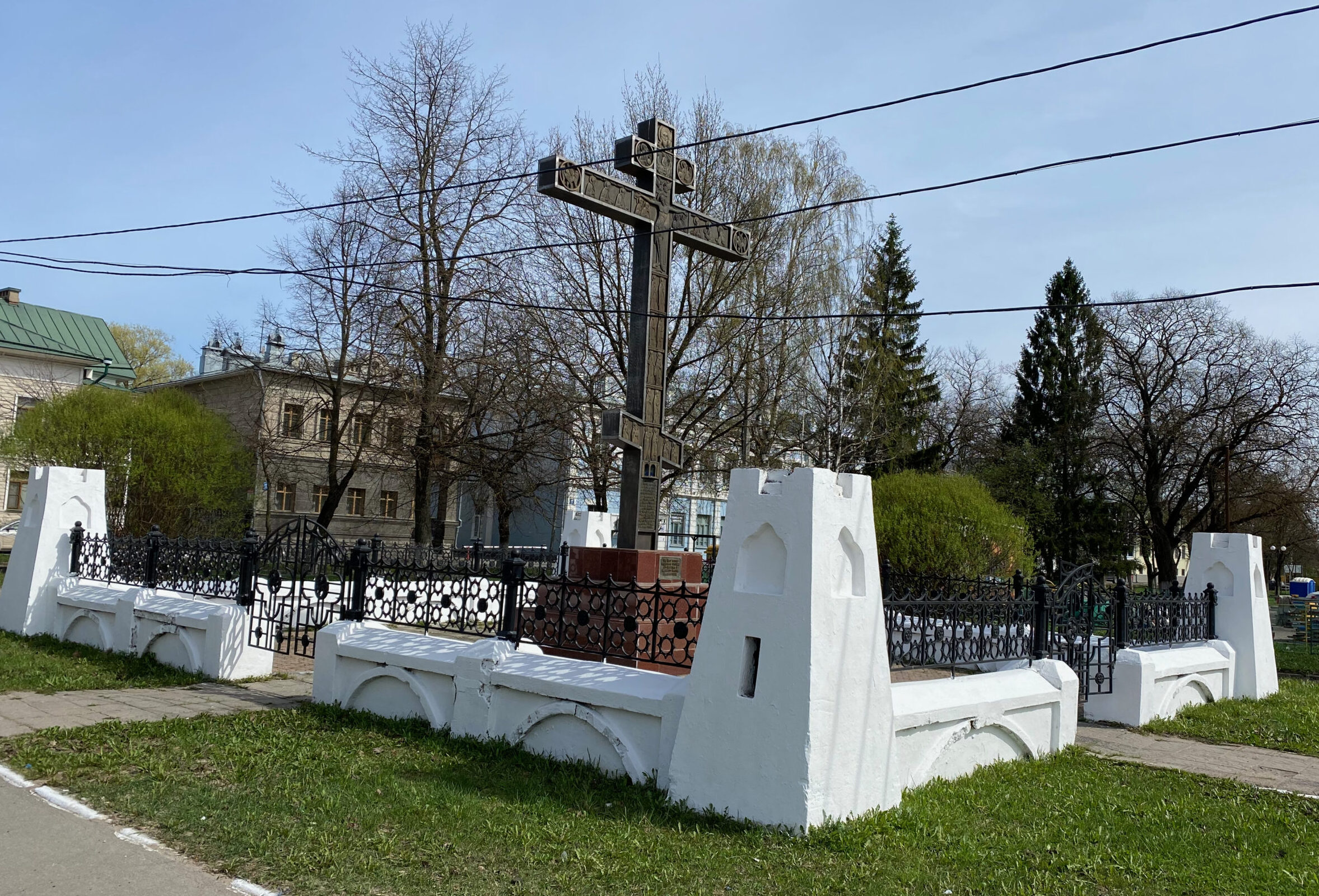Поклонный крест установлен в 1998 году на месте снесенного в 1972 году Спасо-Всеградского собора.
