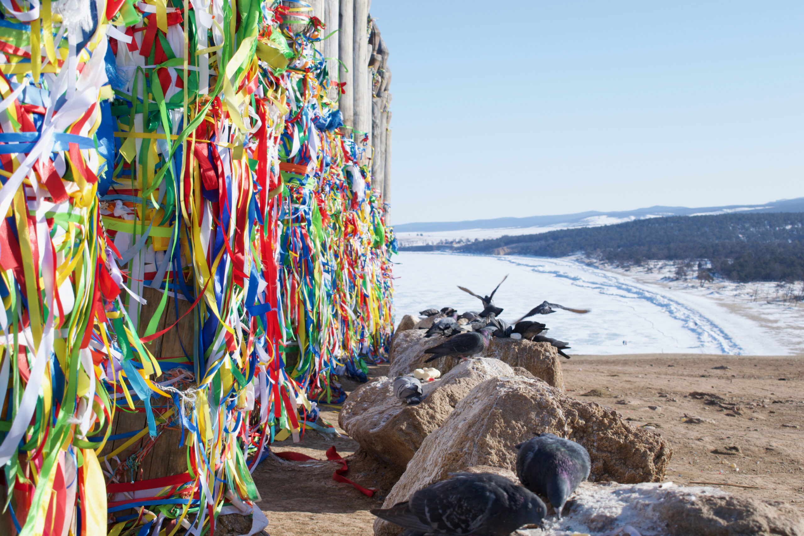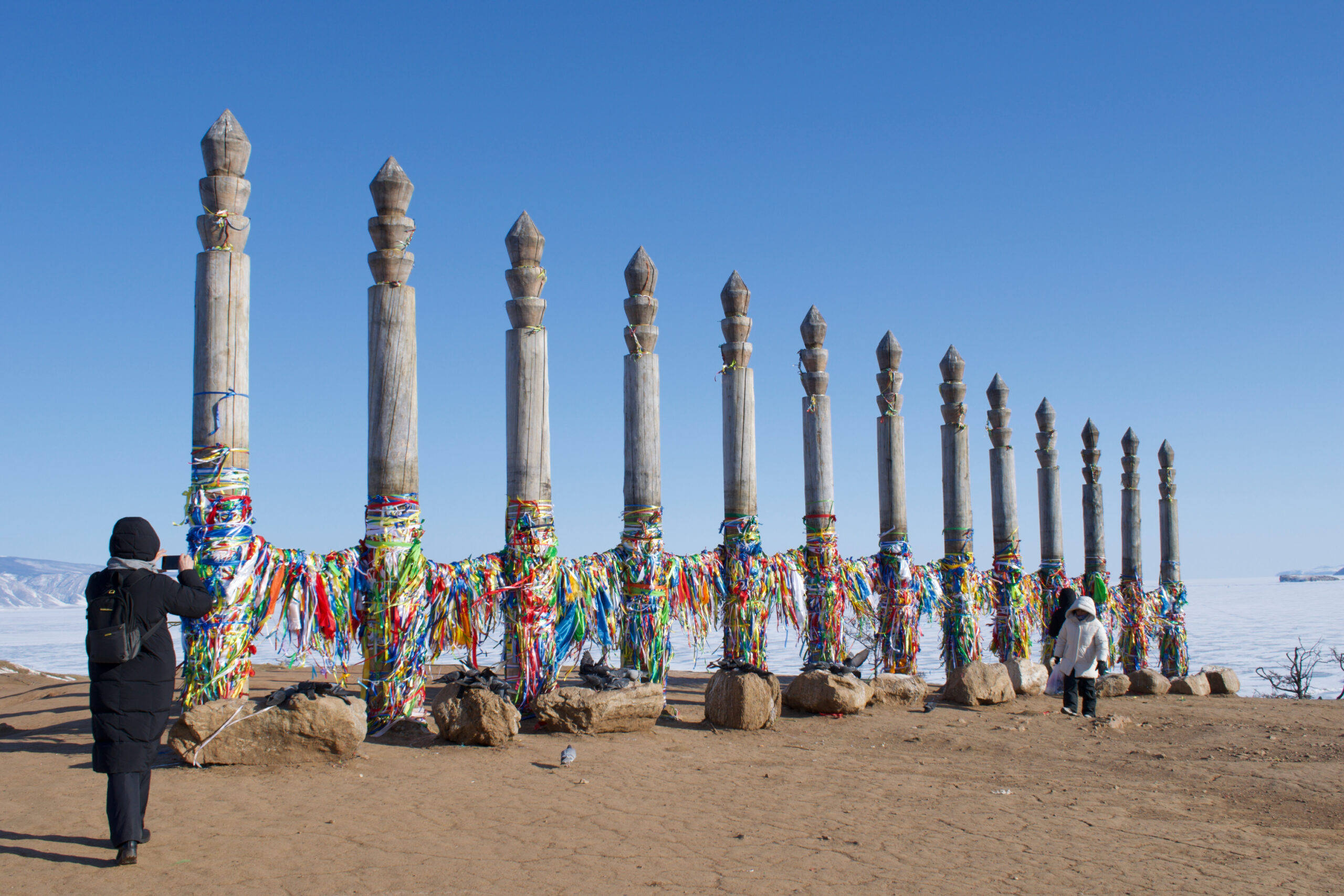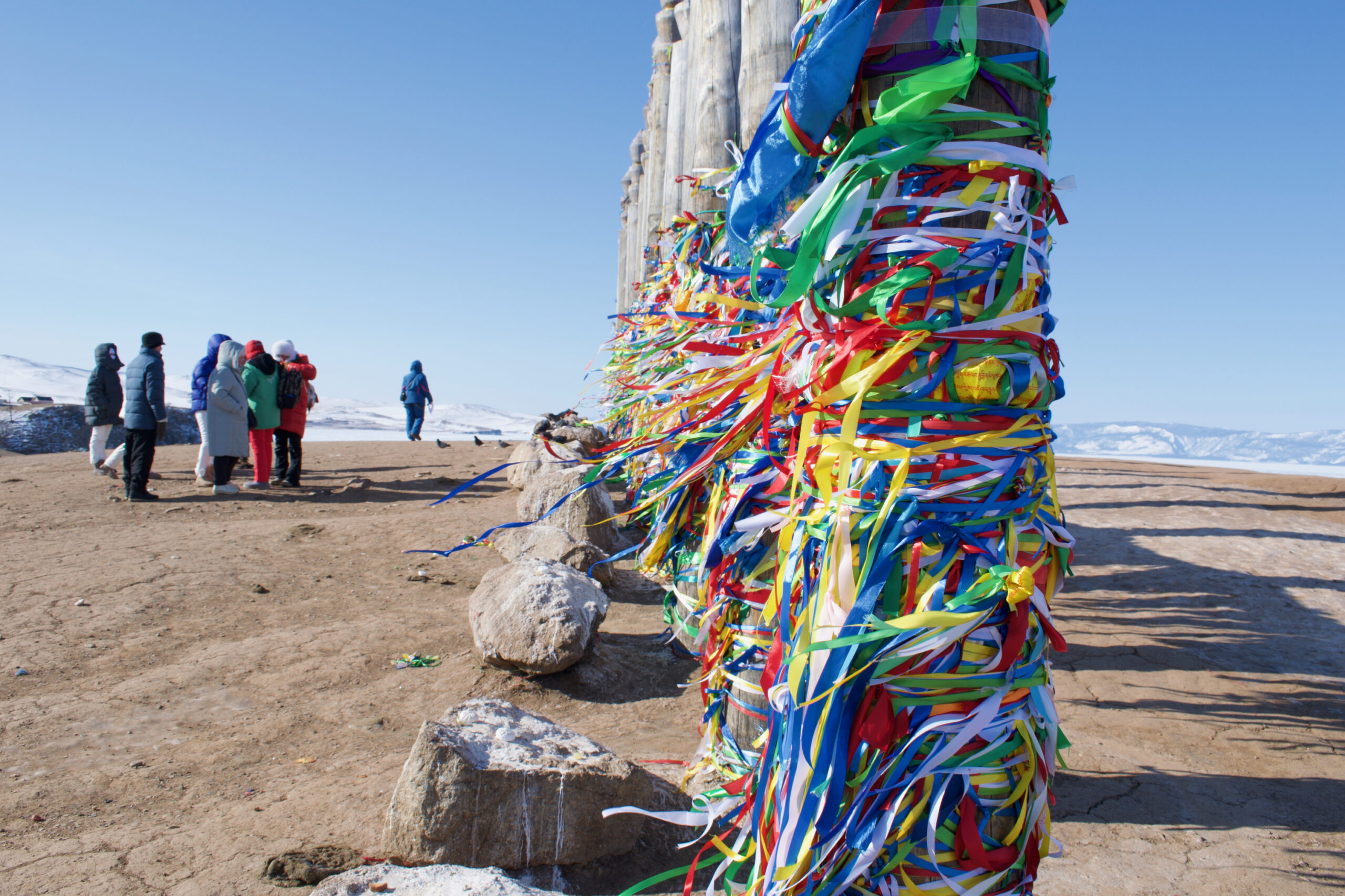Буряты во время обрядов повязывают на сэргэ разноцветные ленточки. Каждая из них несет свою просьбу к высшим силам. Ветер колышет ленты и уносит просьбы в небеса.