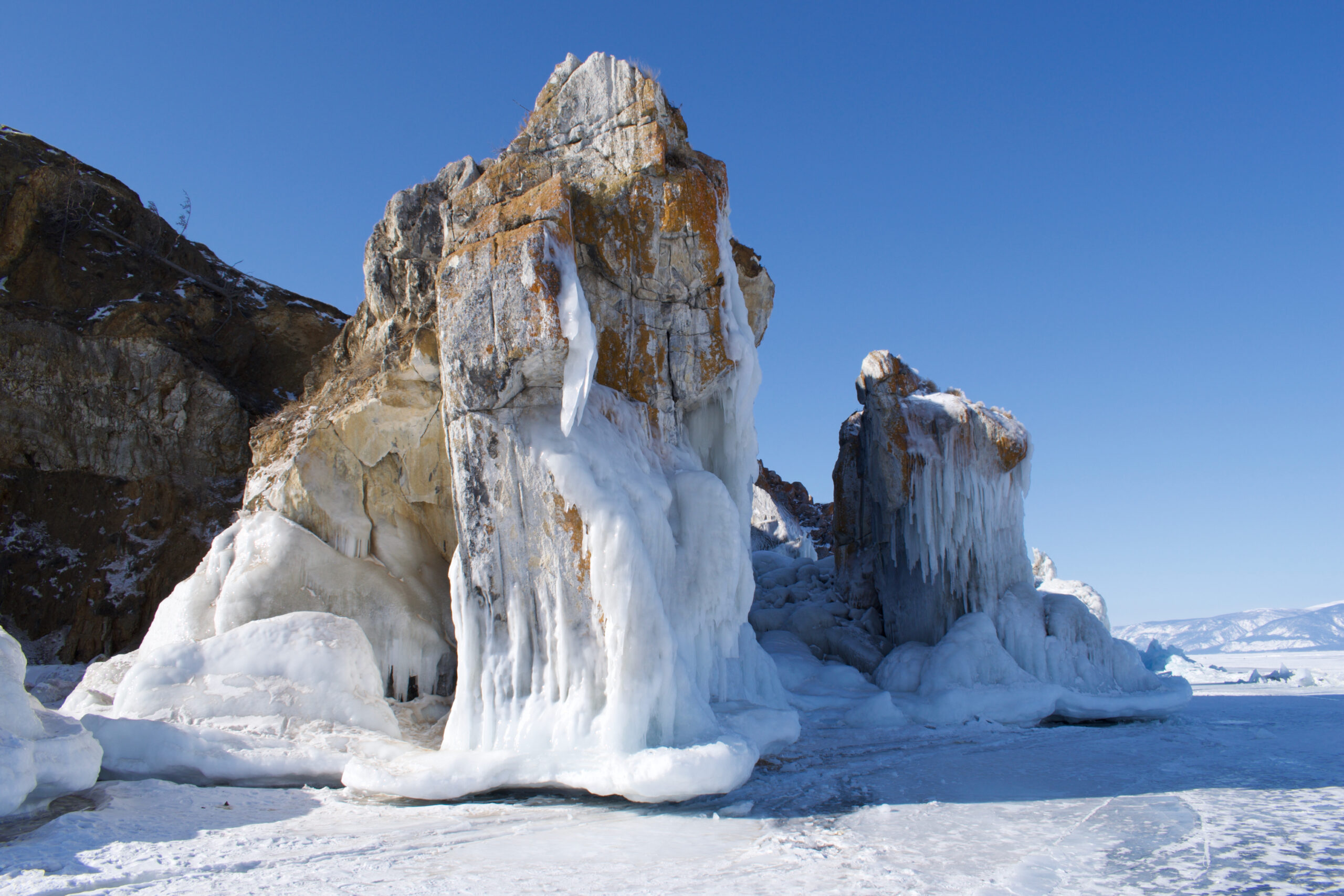 Что хорошо, зимой вокруг Шаманки можно гулять сколько душе угодно! Лед Байкала дает отличную возможность обойти скалу со всех сторон и рассмотреть ее во всей красе.