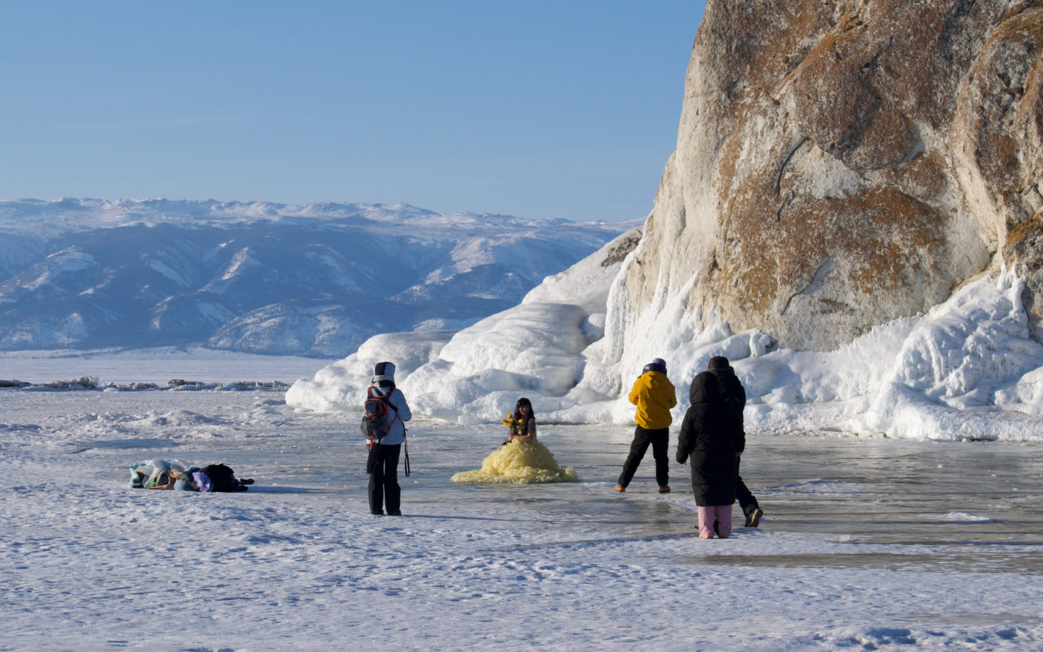 А какие тут получаются красивые фото! Некоторые ради эффектного кадра идут на настоящие подвиги. Вот, например, мороз под минус тридцать, а девушка берет и раздевается до легкого платья!