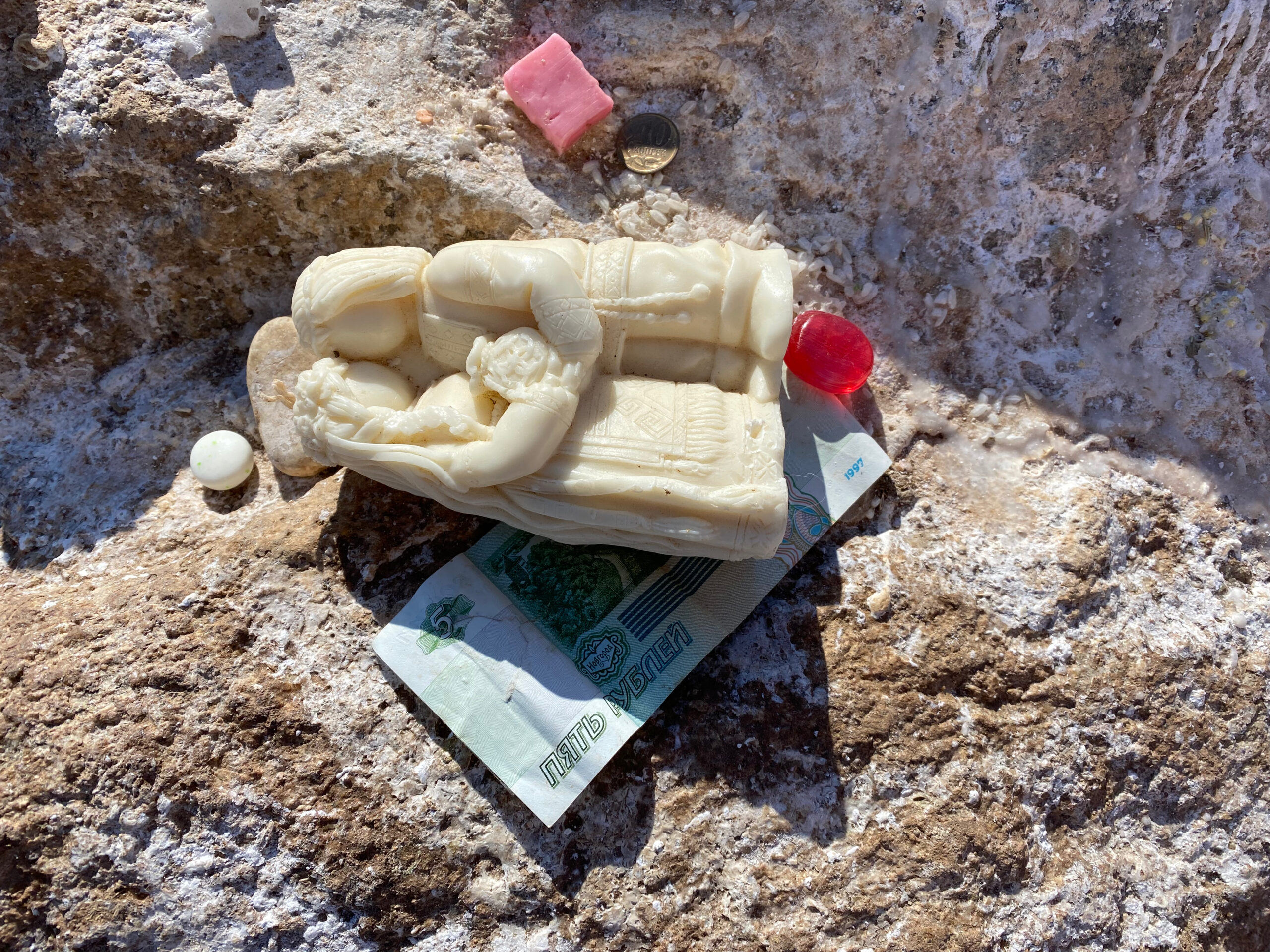 Кто-то даже оставил миленькую фигурку влюбленных. Видимо, этот кто-то пришел сюда попросить счастья в любви.