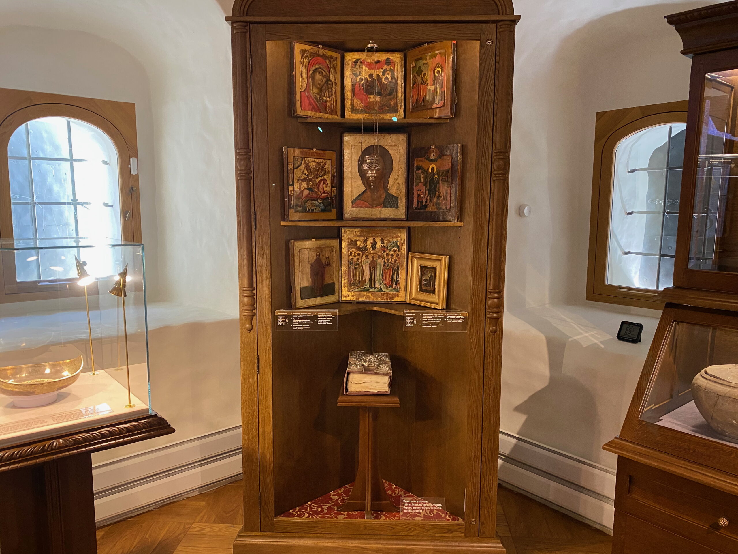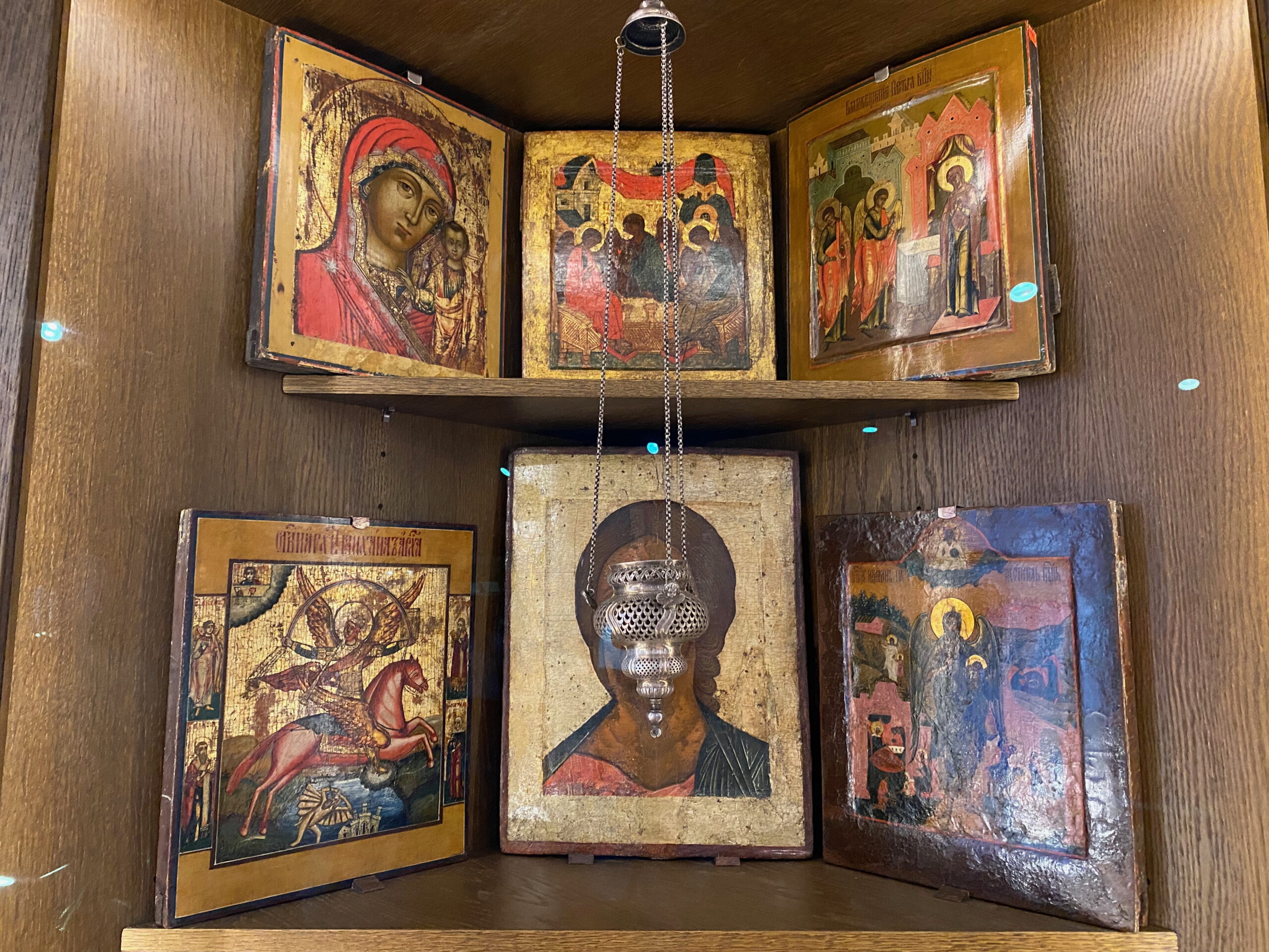 В углу комнаты на почетном месте висели образа. Люди в то время были все верующие, атеистов среди них не было.