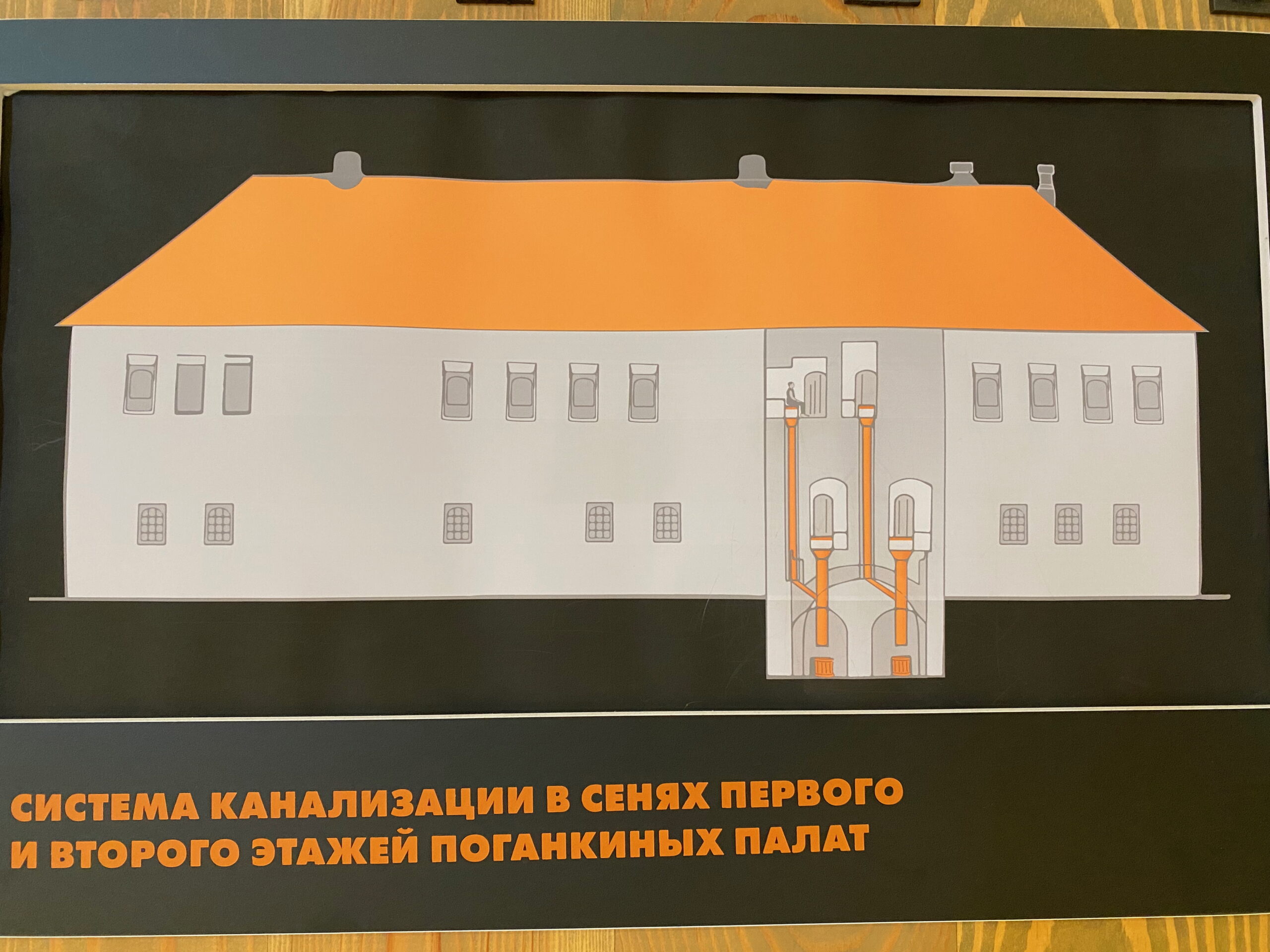 Кроме печного отопления в Поганкиных палатах была еще и уникальная по тем временам система канализации. Таким туалетом в те времена мог похвастаться совсем не каждый.