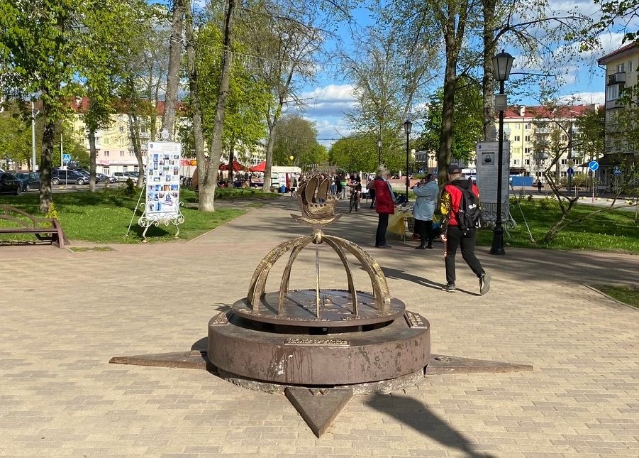 Чуть дальше от него памятный знак «Полоцк — географический центр Европы». За это звание Центра Европы «сражаются» многие европейские города. Белорусские ученые решили, что Центр находится здесь на главной улице Полоцка.