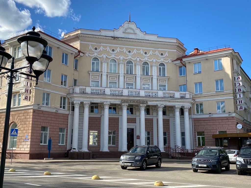 Вдоль проспекта Франциска Скорины высятся красивые ухоженные дома, построенные в советское послевоенное время. Как уже говорилось Полоцк в войну 1941-1945 гг. был сильно разрушен.