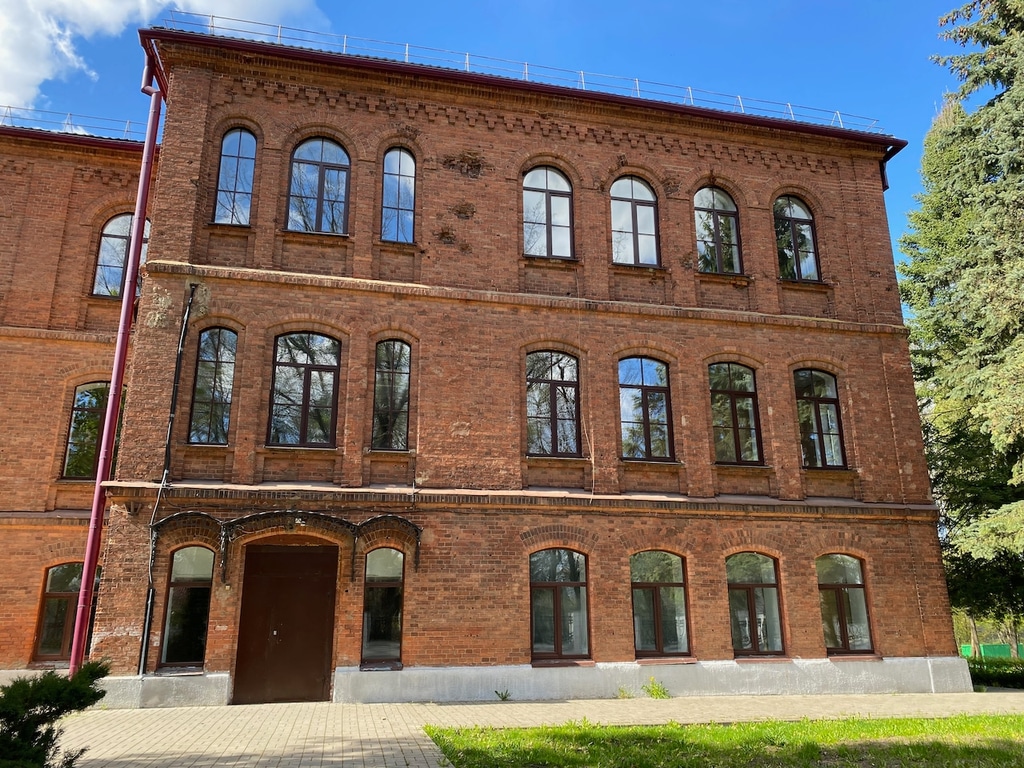 Кроме храмов в монастыре есть и другие постройки. Это монашеские кельи, трапезная и все остальное, что необходимо для полноценной жизни обители. По пути к монастырю встретилось старинное здание из красного кирпича. Сегодня его занимает лесной колледж, а в царское время в нем размещалось епархиальное училище.