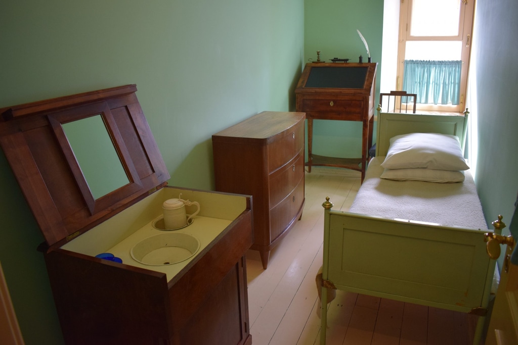 Вот таким образом выглядела комната Александра Пушкина. Как видно на фотографии, в ней находится кровать, бюро для занятий, комод для одежды и умывальник. Все выглядит довольно скромно. Видимо, будущих чиновников с детства приучали к аскетичности.