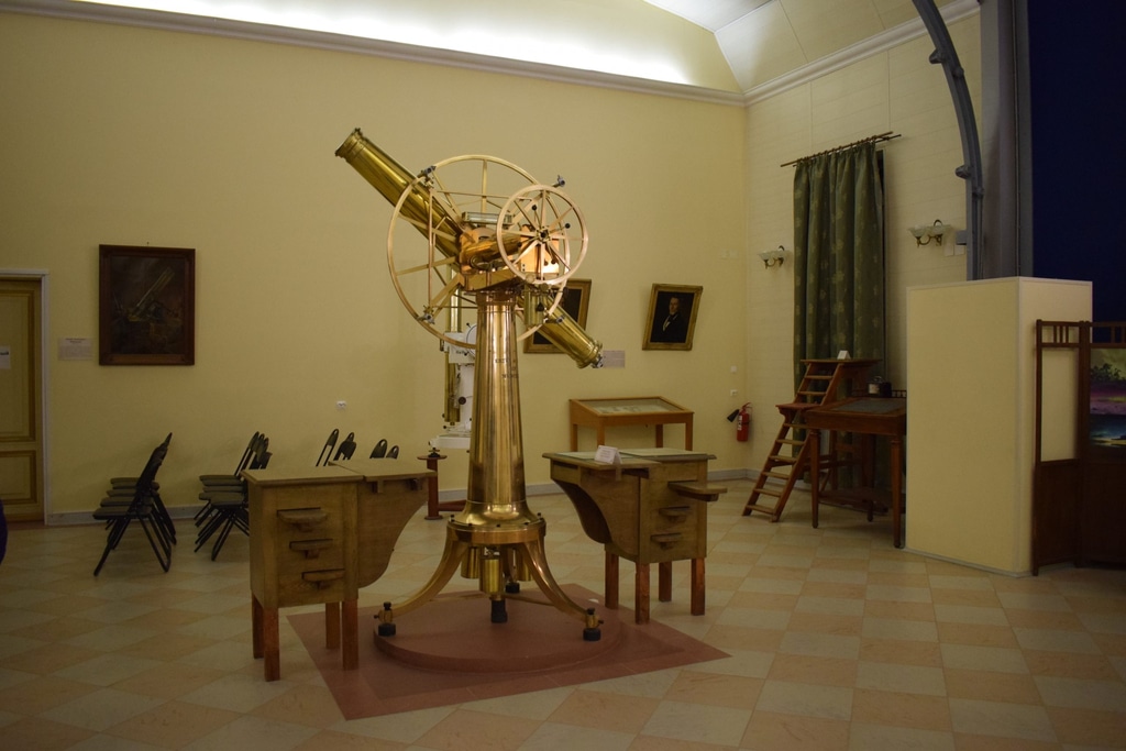 После вестибюля с нулевым меридианом и бюстами ученых-астрономов мы перешли в основной зал с музейными экспонатами. Здесь находится инструментарий для наблюдения за небом, который применялся учеными столетия назад.