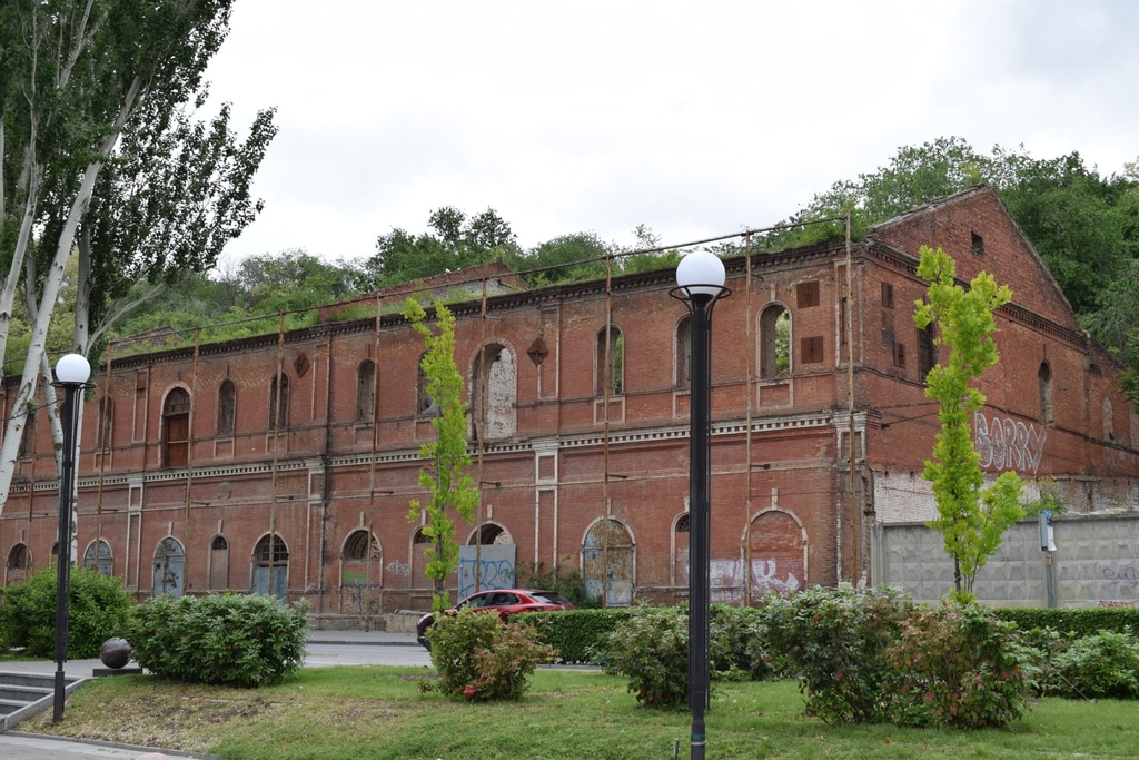Набережная выводит нас к старой еще дореволюционной части Ростова-на-Дону: Парамоновским складам. Парамоновскими склады стали называться в честь богатого ростовского предпринимателя Елпидифора Парамонова, фантастически разбогатевшего на торговле зерном.